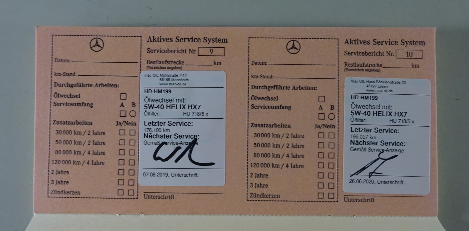 Inhalt: Betriebsanleitung, Service-Stationen, Mercedes Mobil, Radio, Serviceheft mit Einträgen bis 196.057 km.