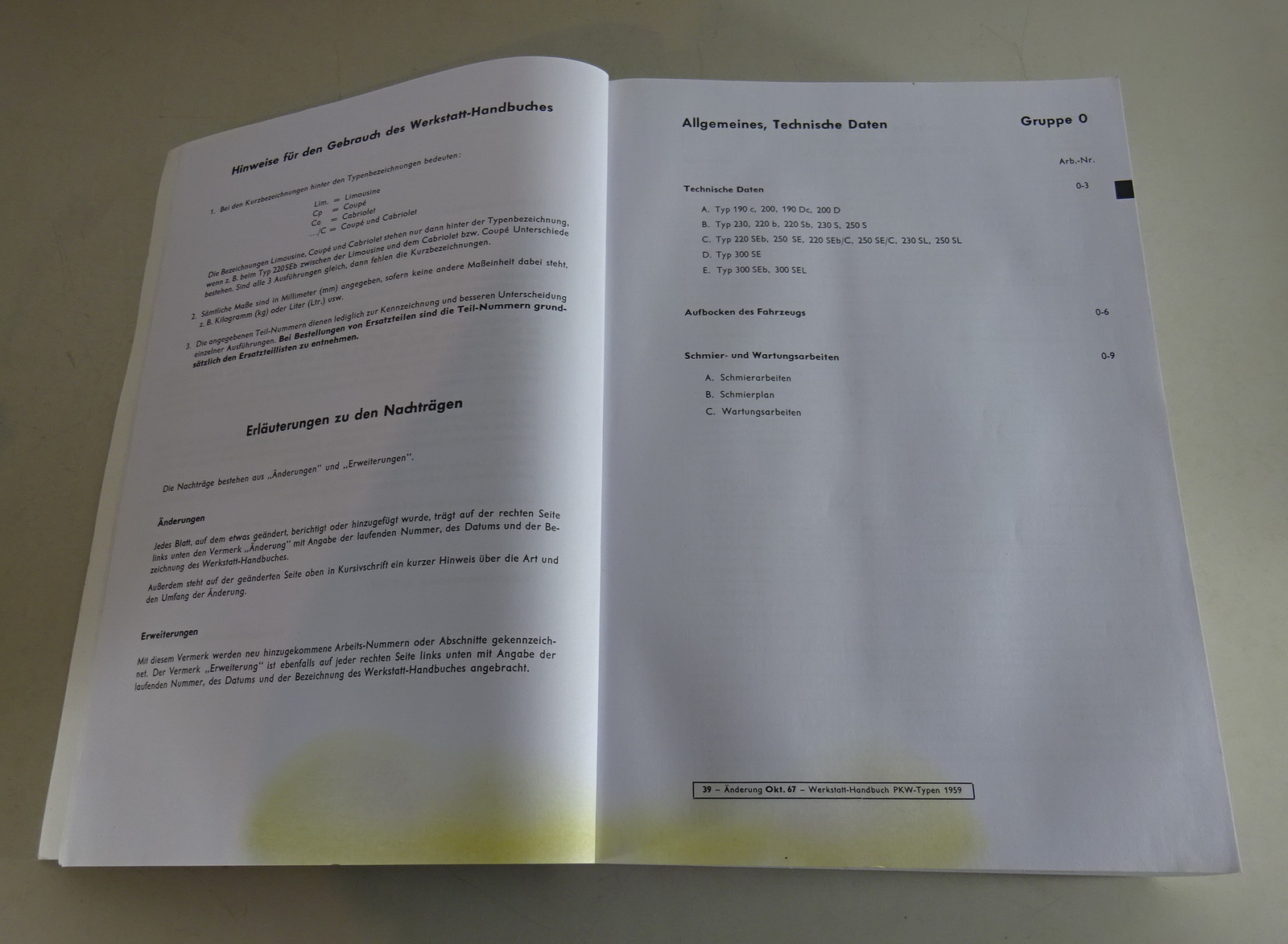 Produktinformationen "Werkstatthandbuch Mercedes Benz W110 W111 W112 R113 230 + 250 SL Pagode 10/1967"