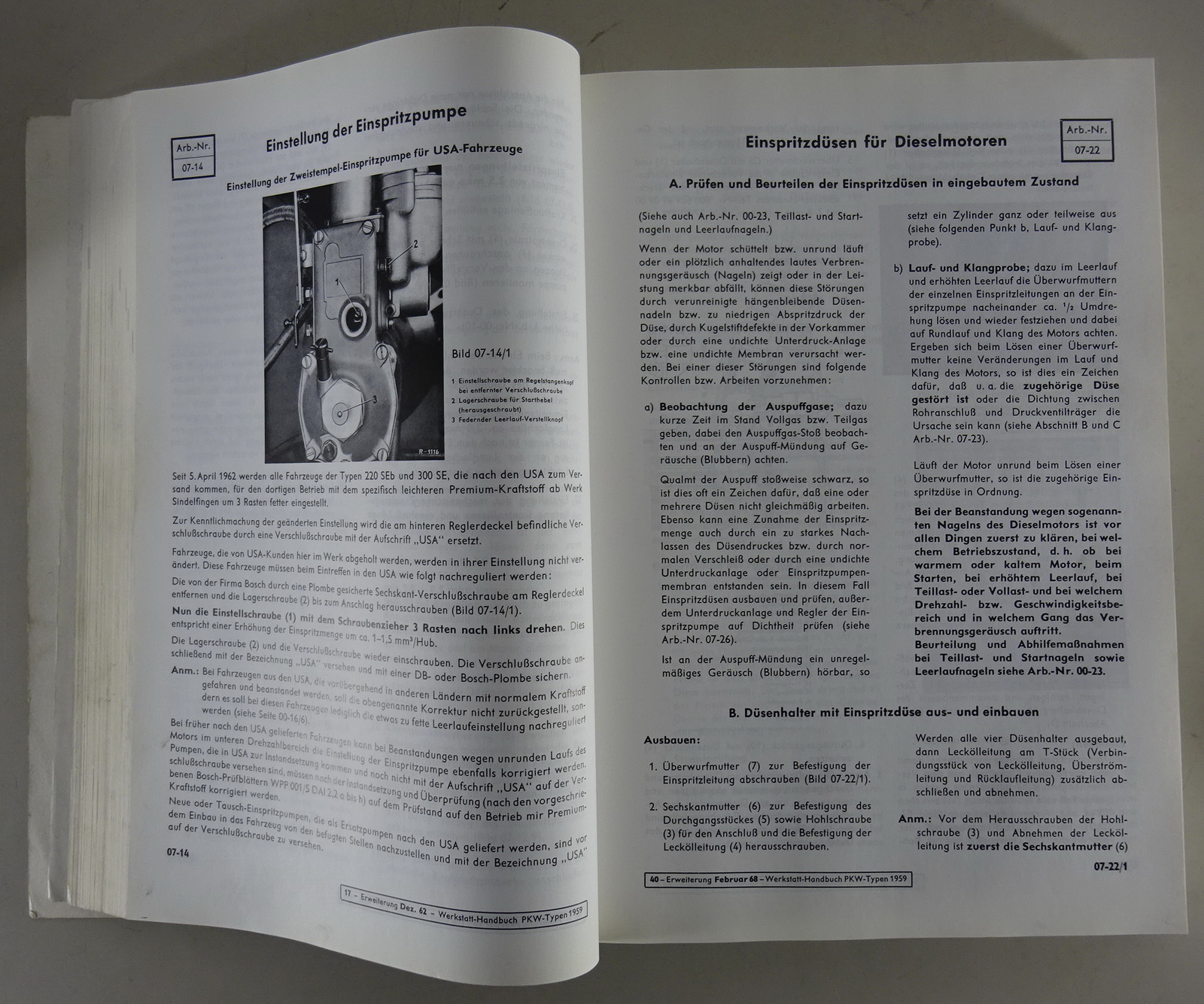 Mercedes-Benz PKW Typen ab August 1959 - Wartung, Einstellung und Montage