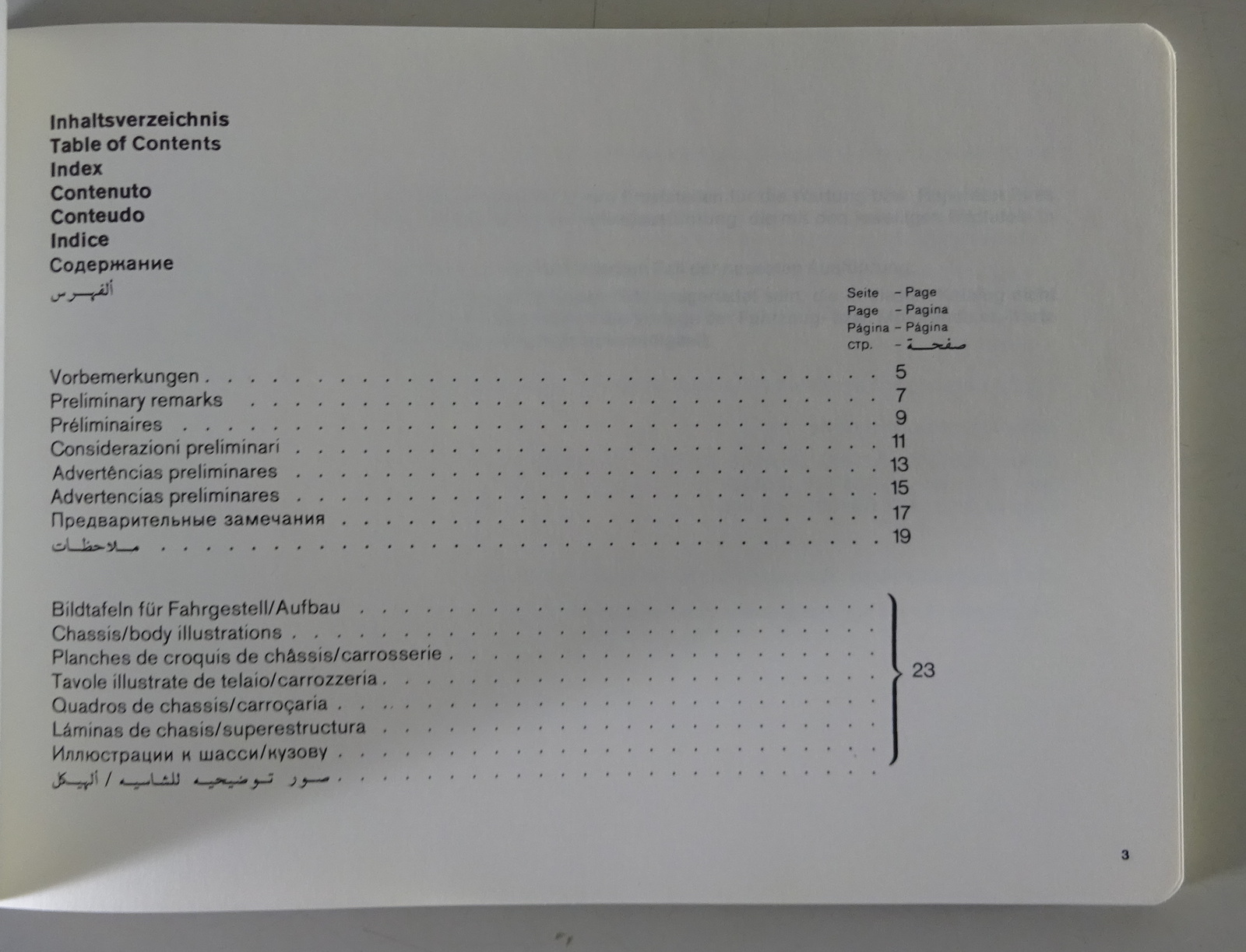 Inhalt: Bildkatalog / Ersatzteilkatalog mit Explosionszeichnungen für Mercedes Originalteile, mit Bildtafelübersicht für u.g. Sprachen