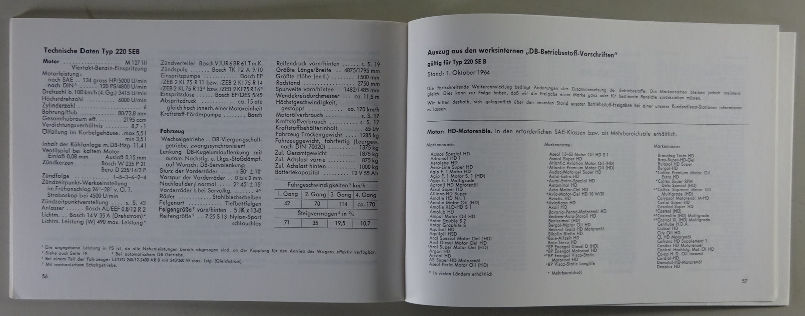 Betriebsanleitung Mercedes 220 SE Heckflosse W111 Stand 1/1965 - Reprint 3/1994