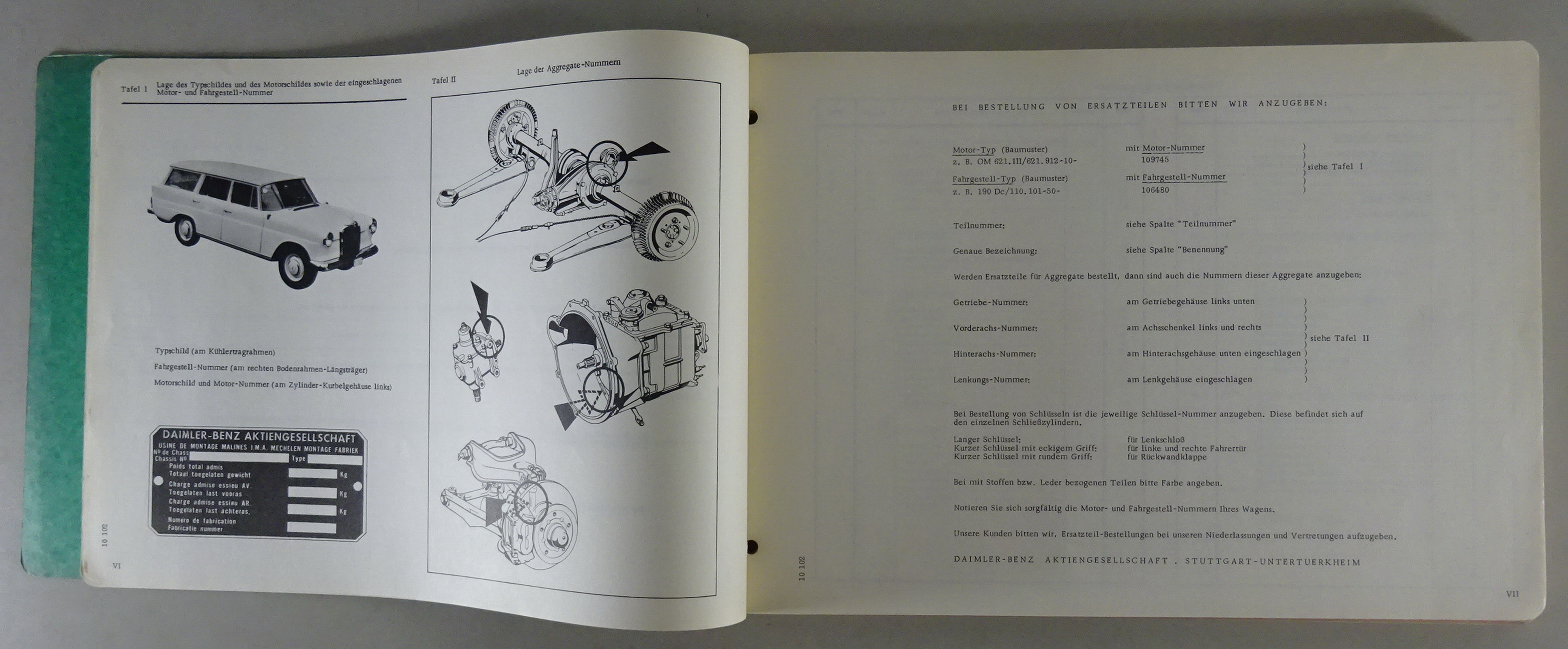 Teilekatalog Aufbau Mercedes-Benz W110 190 Dc Universal Heckflosse Stand 07/1965