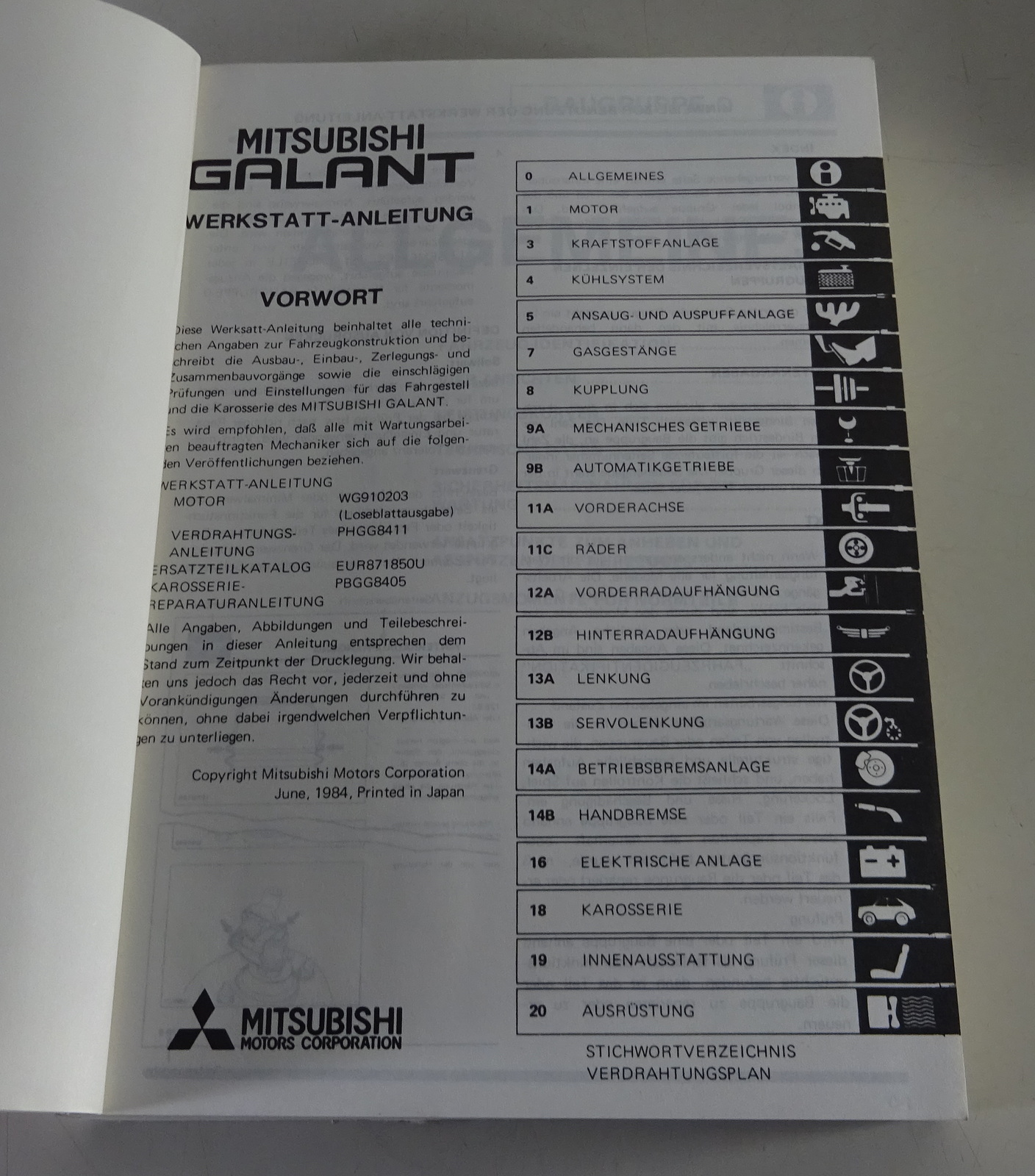 Produktinformationen "Werkstatthandbuch + Nachträge Mitsubishi Galant Typ E10 Baujahr 1983 - 1988"