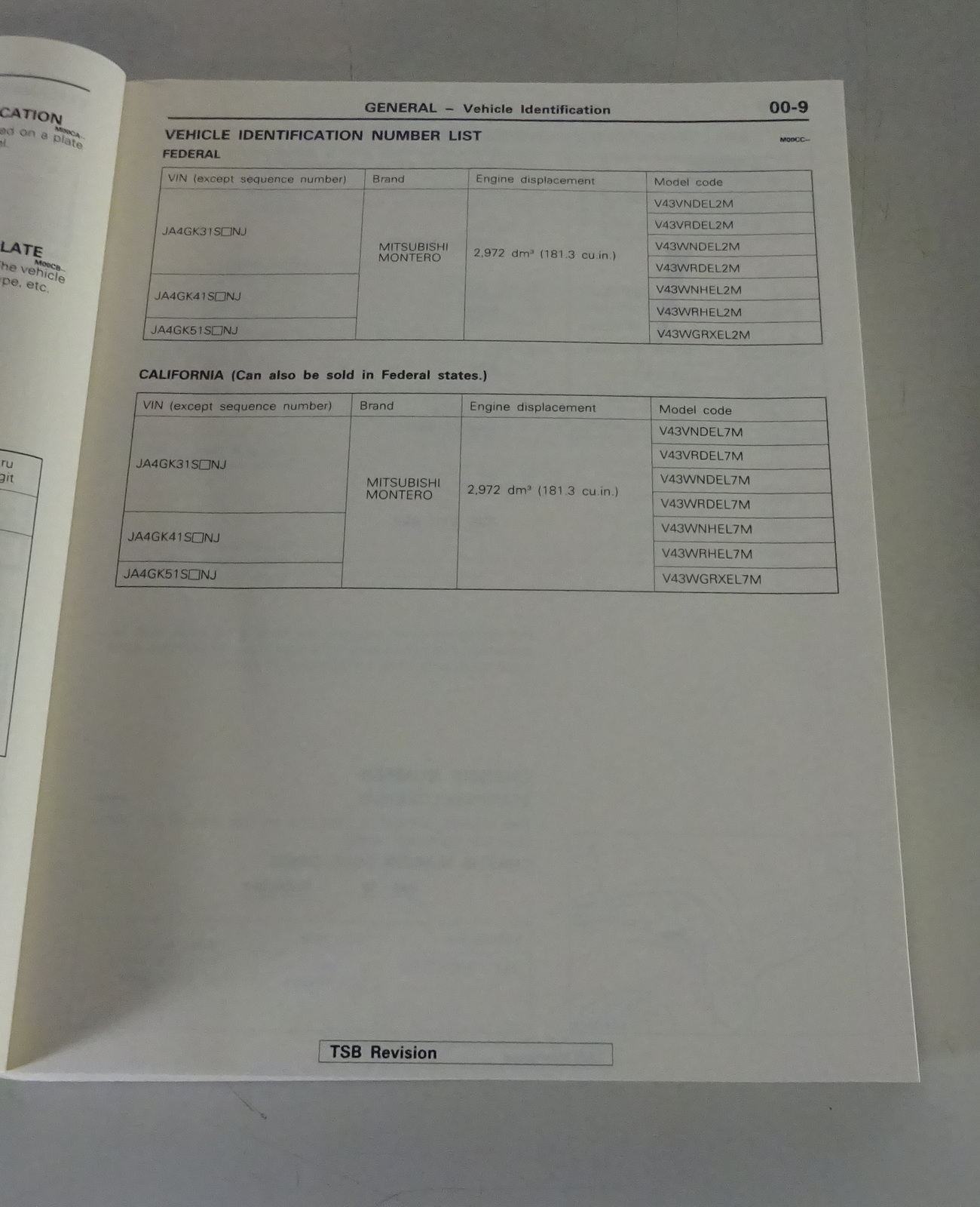 Workshop Manual / Service Manual Mitsubishi Pajero / Montero V20 from 1992