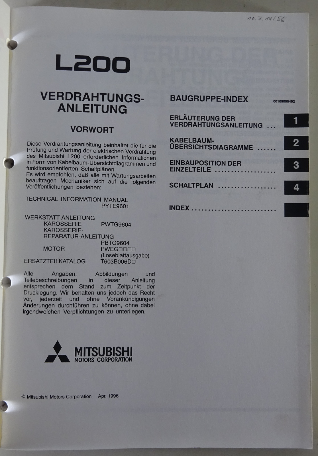 Elektrische Schaltpläne Mitsubishi L200 ab Baujahr 1997 Stand 07/1996
