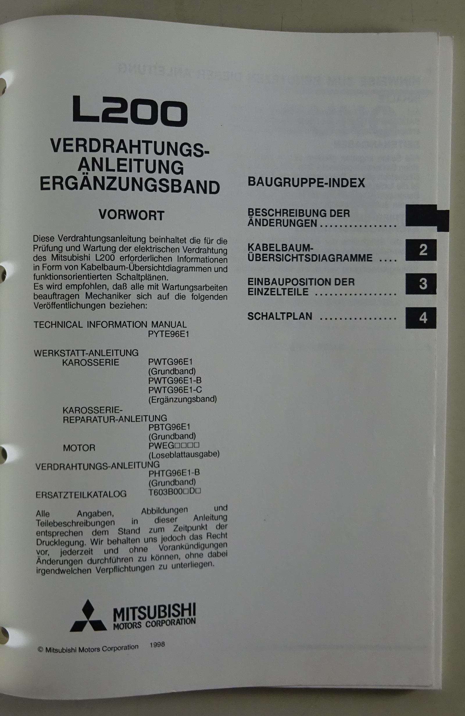 Werkstatthandbuch Nachtrag Elektrik Schaltpläne Mitsubishi Pick-up L200 ab 1999