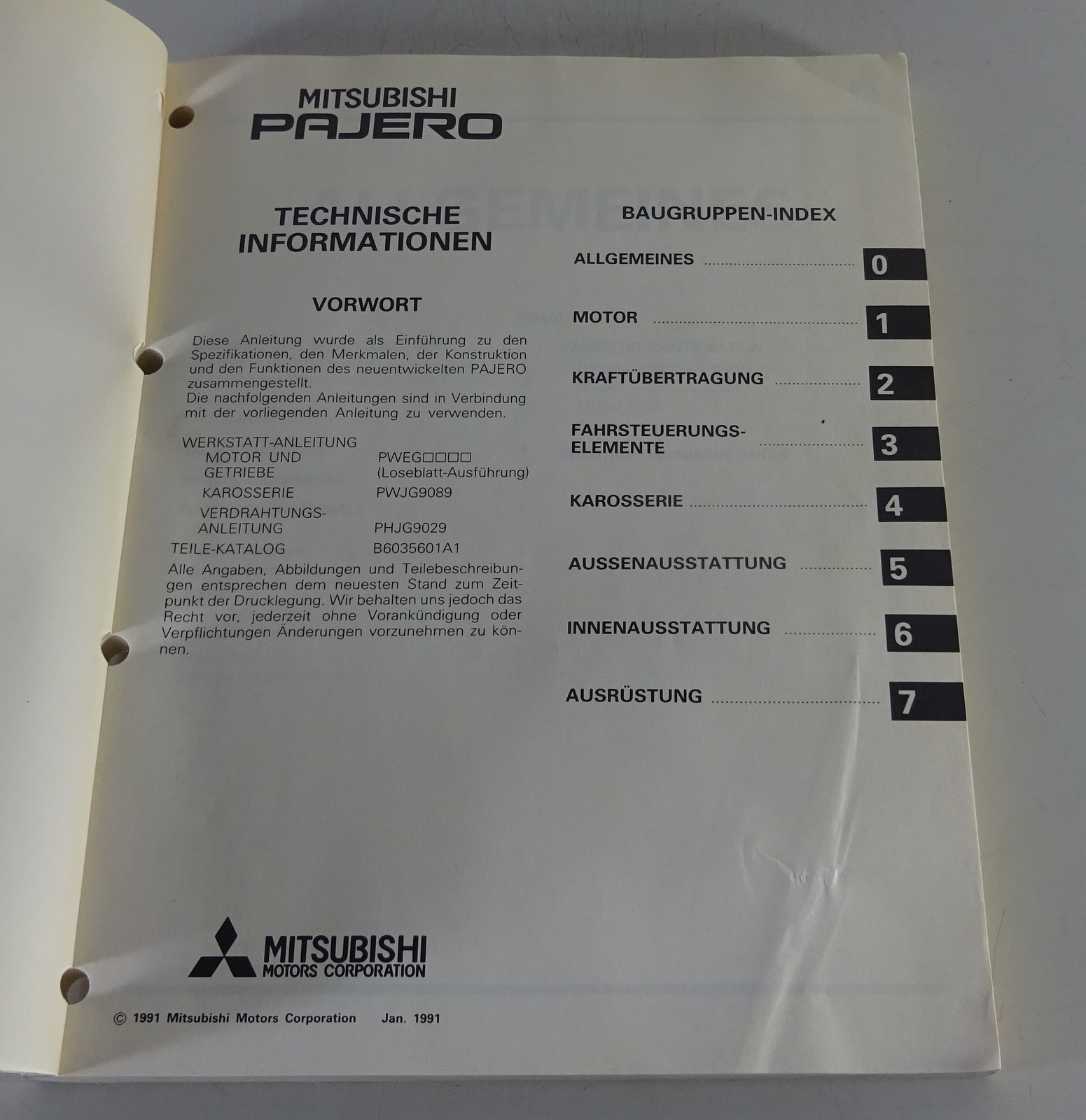 Werkstatthandbuch Technische Informationen Mitsubishi Pajero Stand 1991