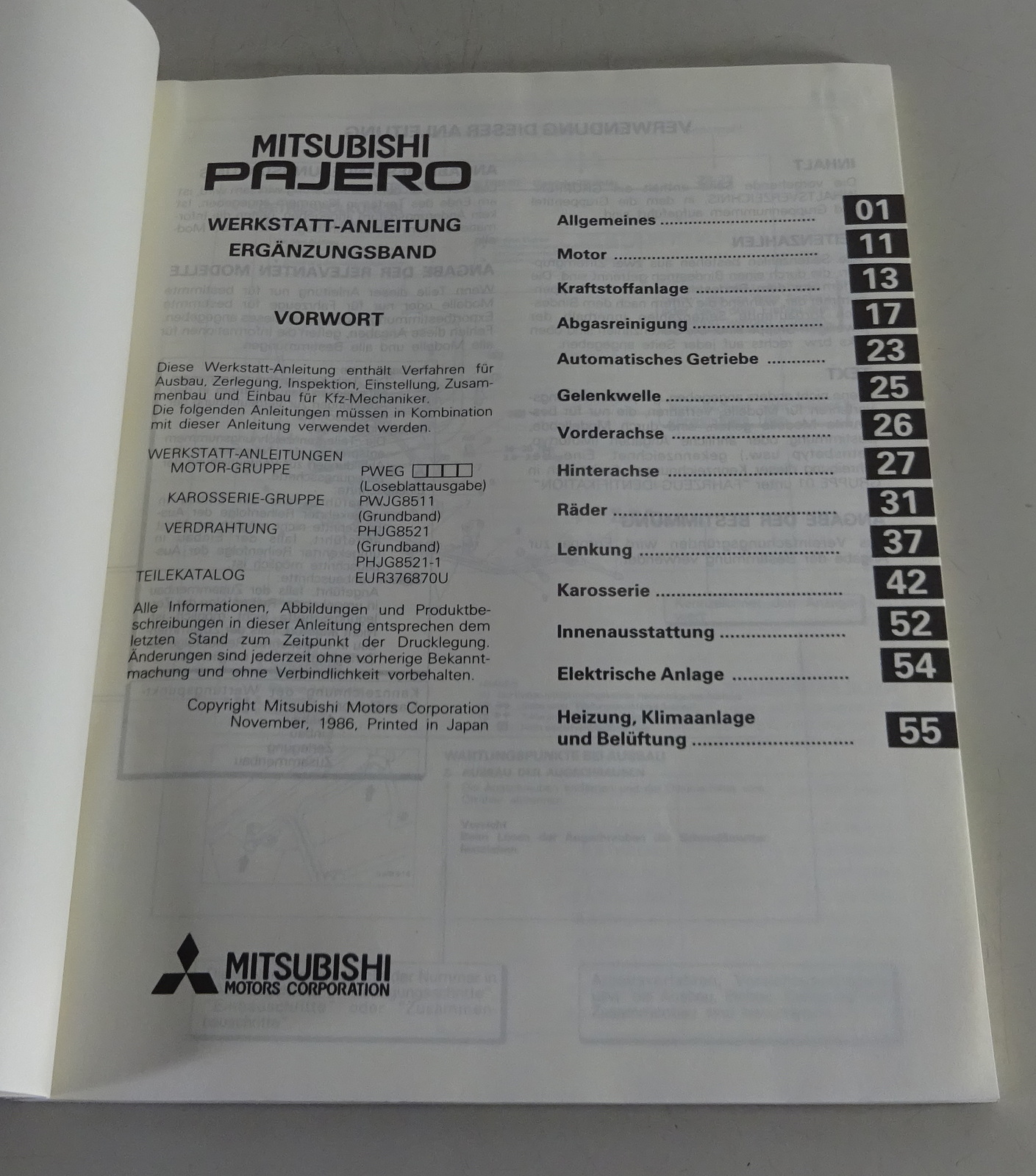 Produktinformationen "Werkstatthandbuch Nachtrag Karosserie Mitsubishi Pajero L040 Stand 1987"