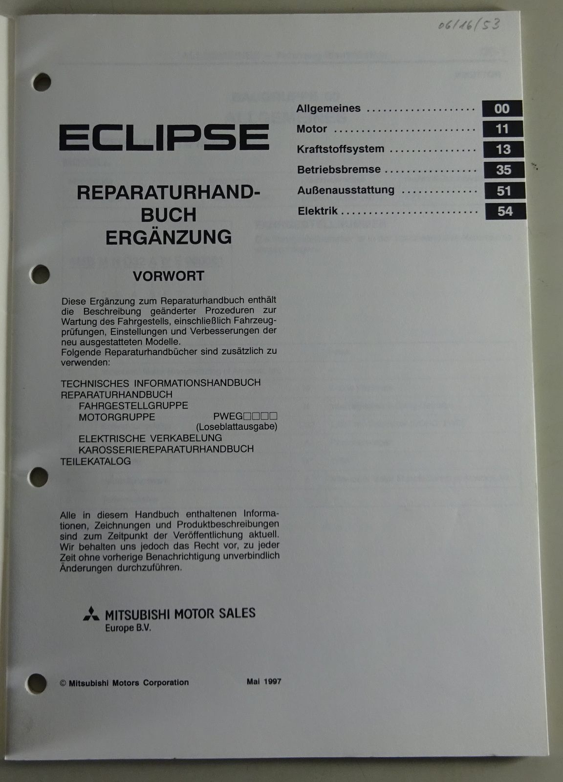 Produktinformationen "Werkstatthandbuch Mitsubishi Eclipse D 30 Nachtrag Karosserie ab Baujahr 1998"