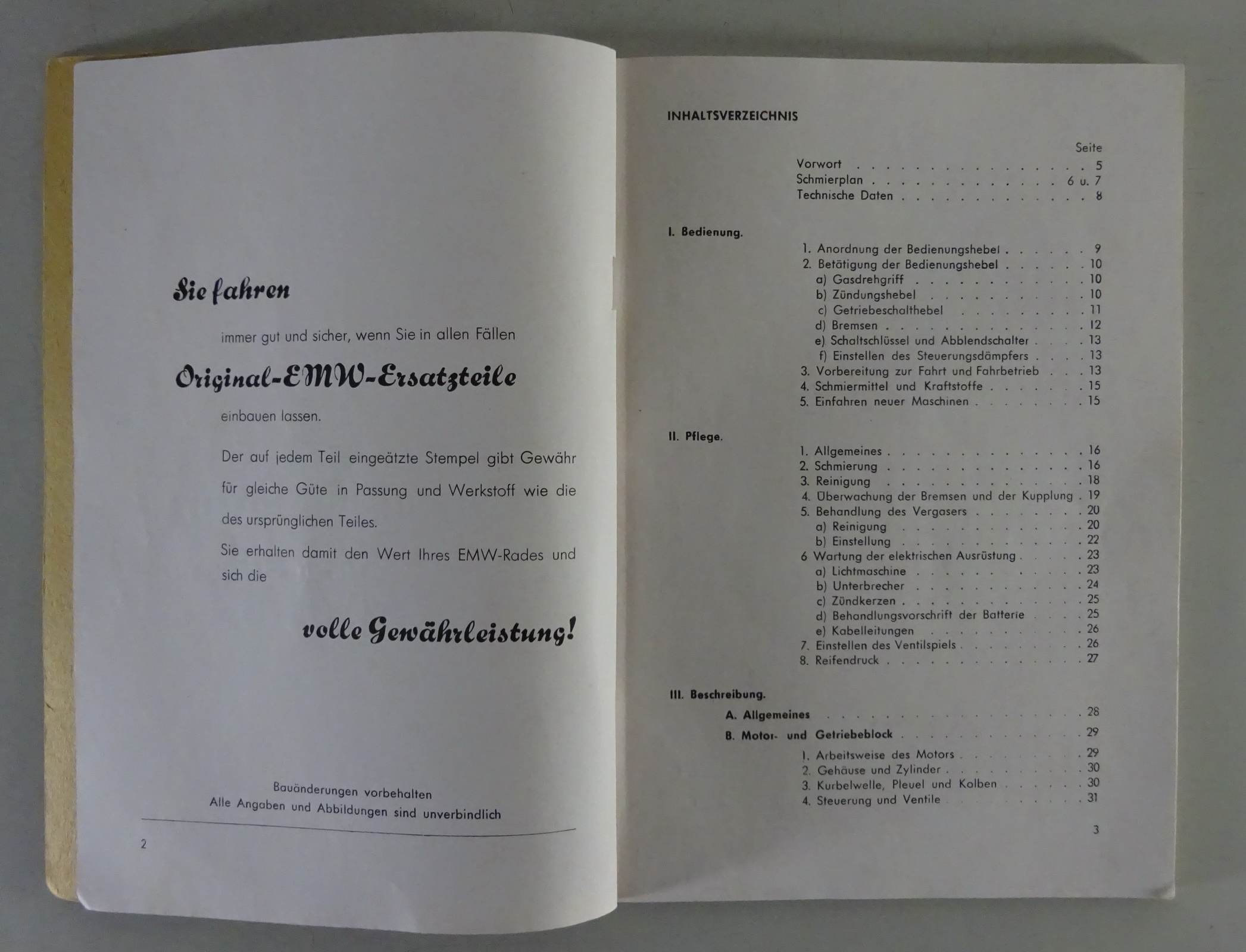 Inhalt: Technische Daten, Beschreibung, Bedienungsanleitung, Pflegeanweisung, Instandsetzungsanweisungen