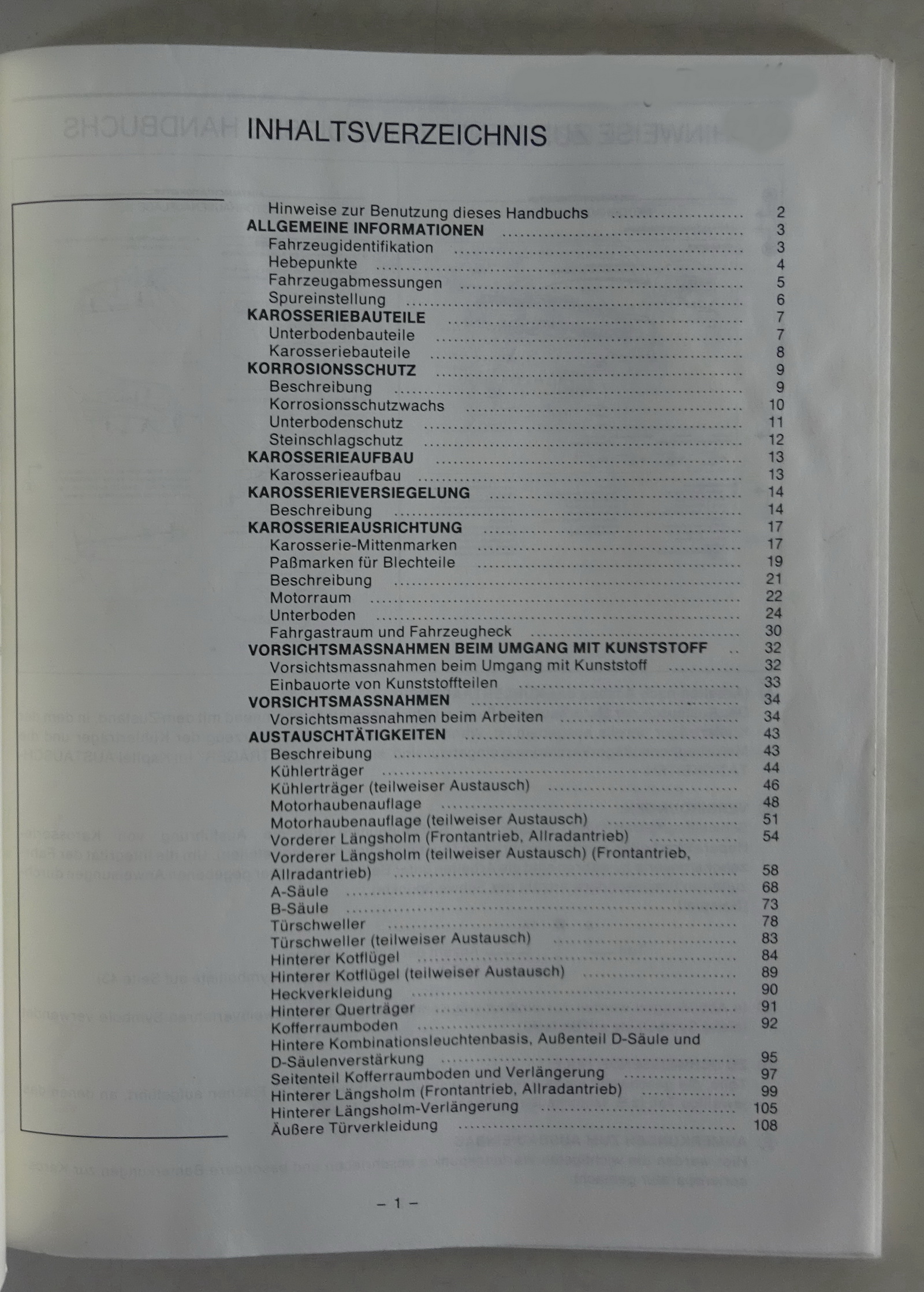 Inhalt: Karosseriebauteile, Korrosionsschutz, Karosserieaufbau, Karosserieversiegelung, Karosserieausrichtung, Vorsichtsmaßnahmen, Austauschtätigkeiten