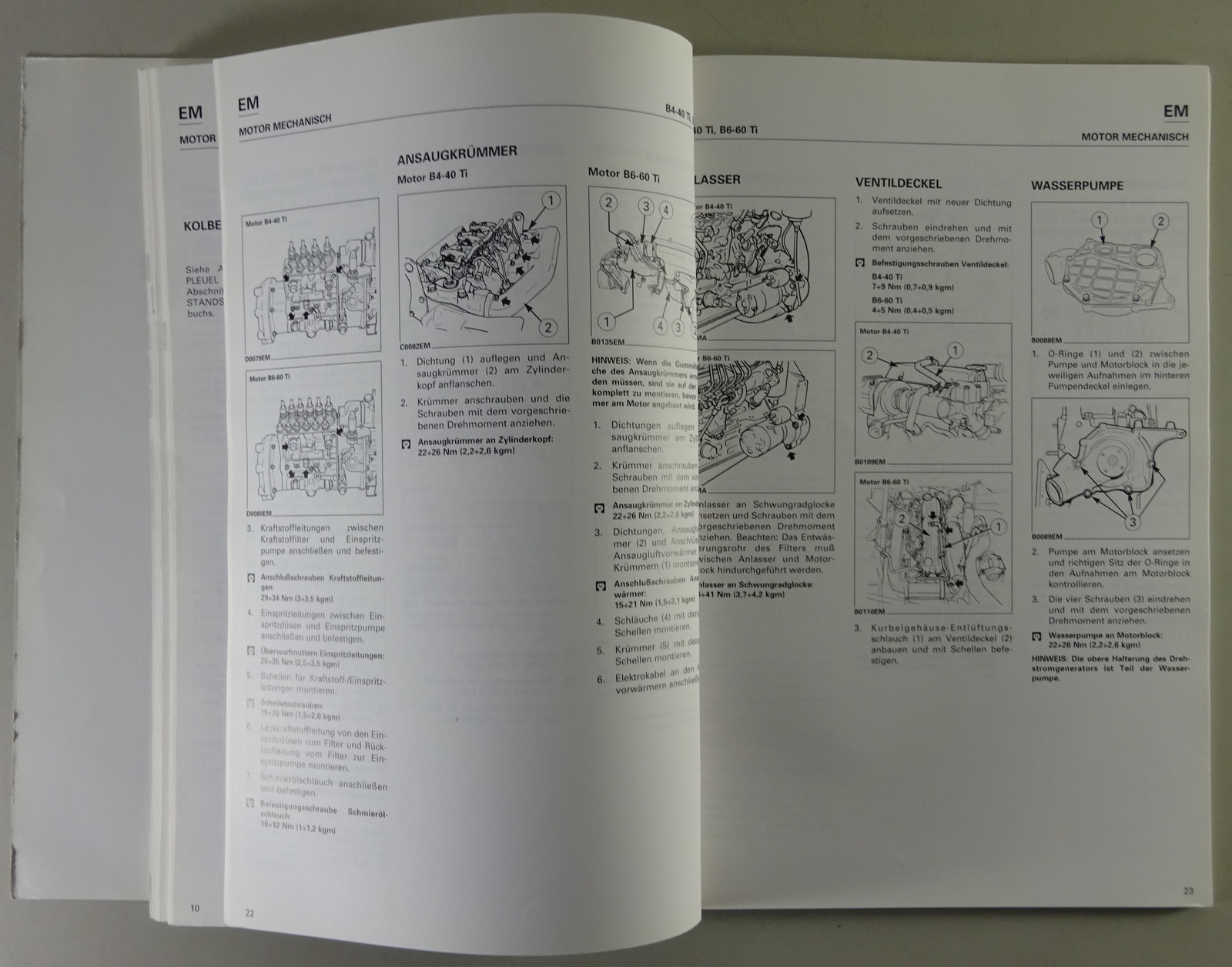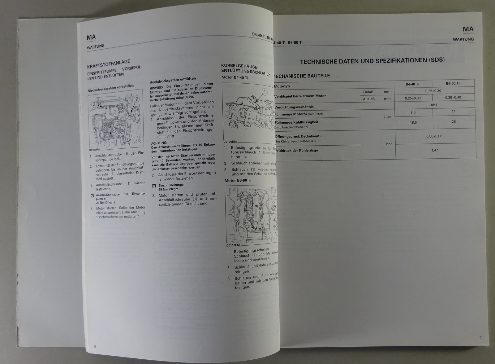 Inhalt: Allgemeine Angaben, Wartung, Motor Mechanisch, Motorschmier- und Kühlanlage, Kraftstoffanlage