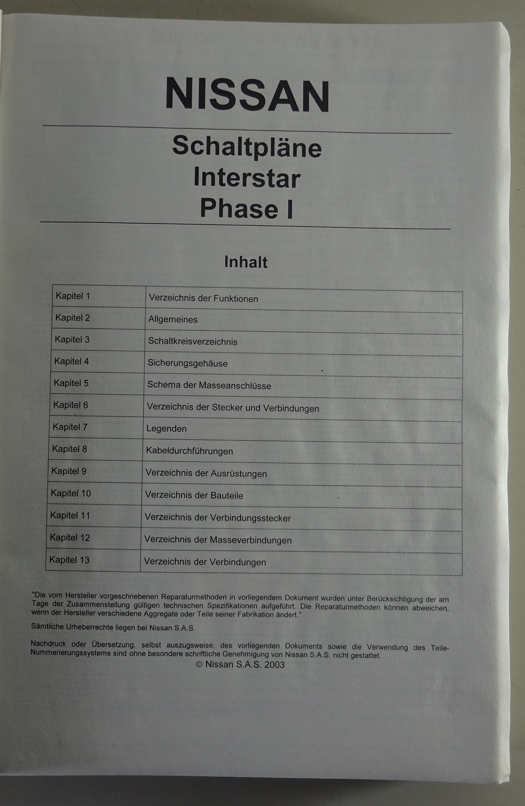 Werkstatthandbuch Elektrik / Schaltpläne Nissan Interstar X70 Phase I v. 03/2003
