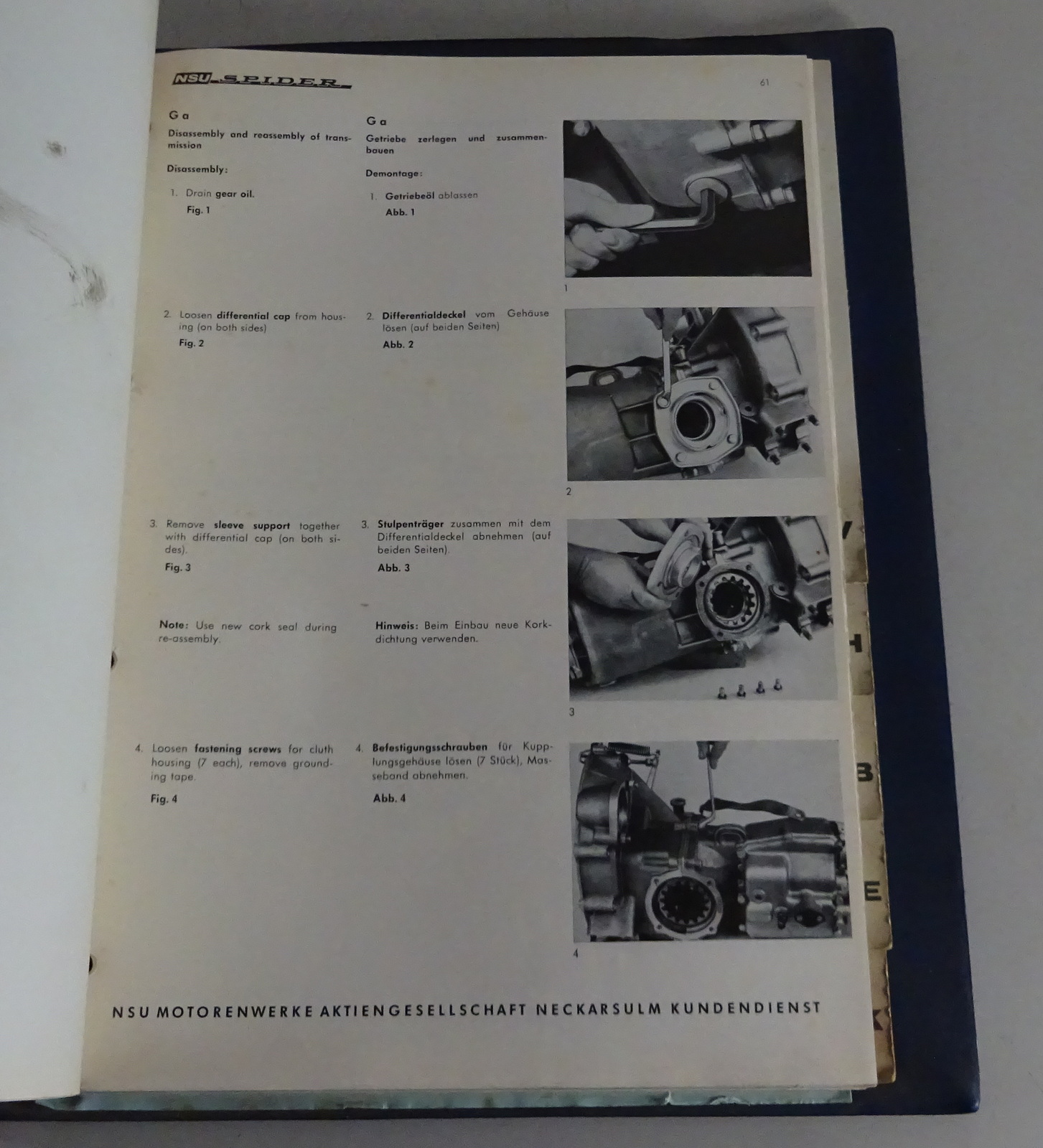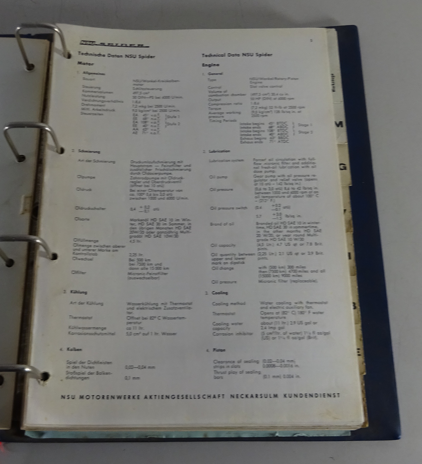Werkstatthandbuch / Reparaturhandbuch NSU Wankel - Spider Stand 10/1964