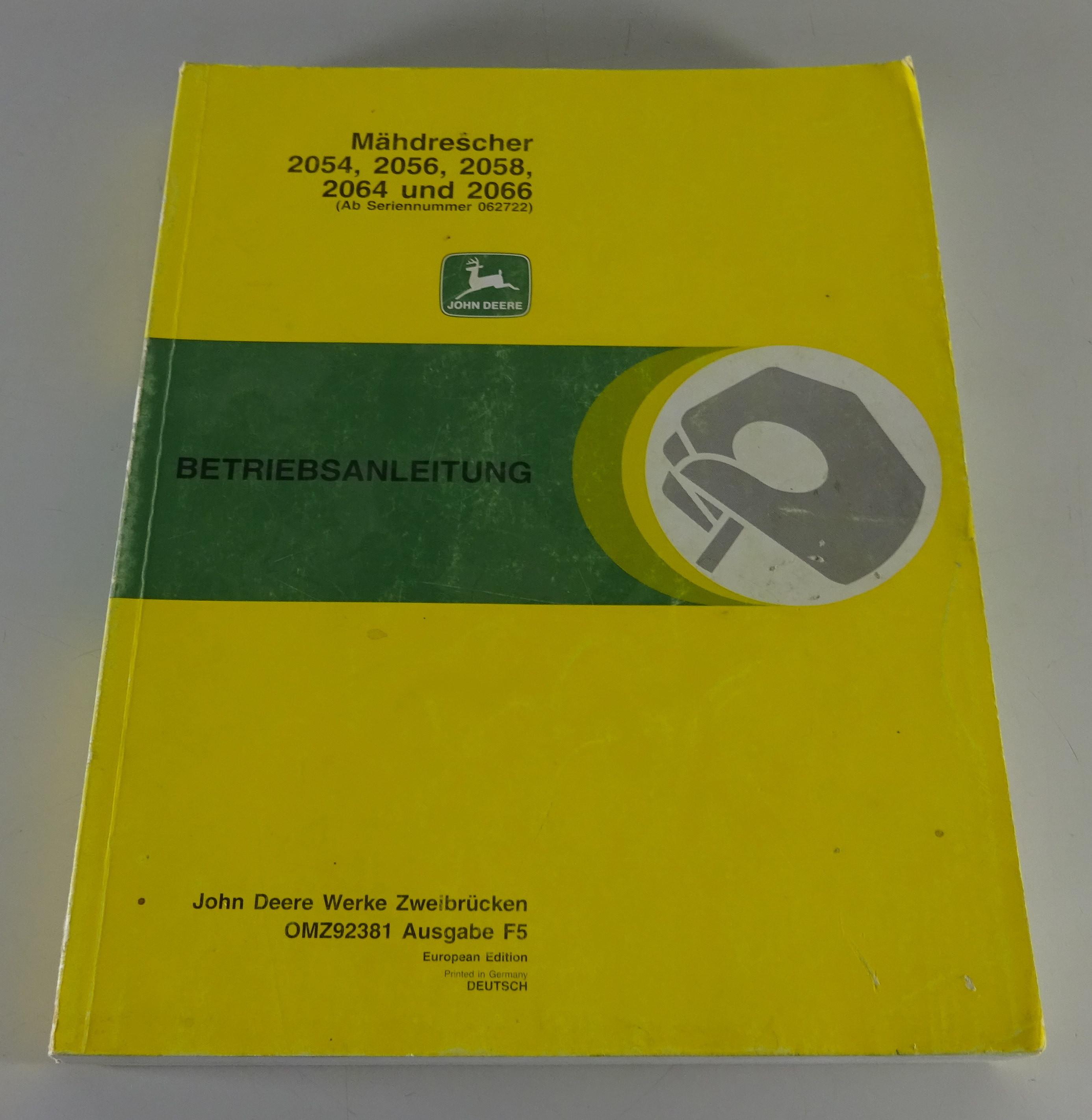 Betriebsanleitung / Handbuch John Deere Mähdrescher 2054, 2056, 2058, 2064, 2066