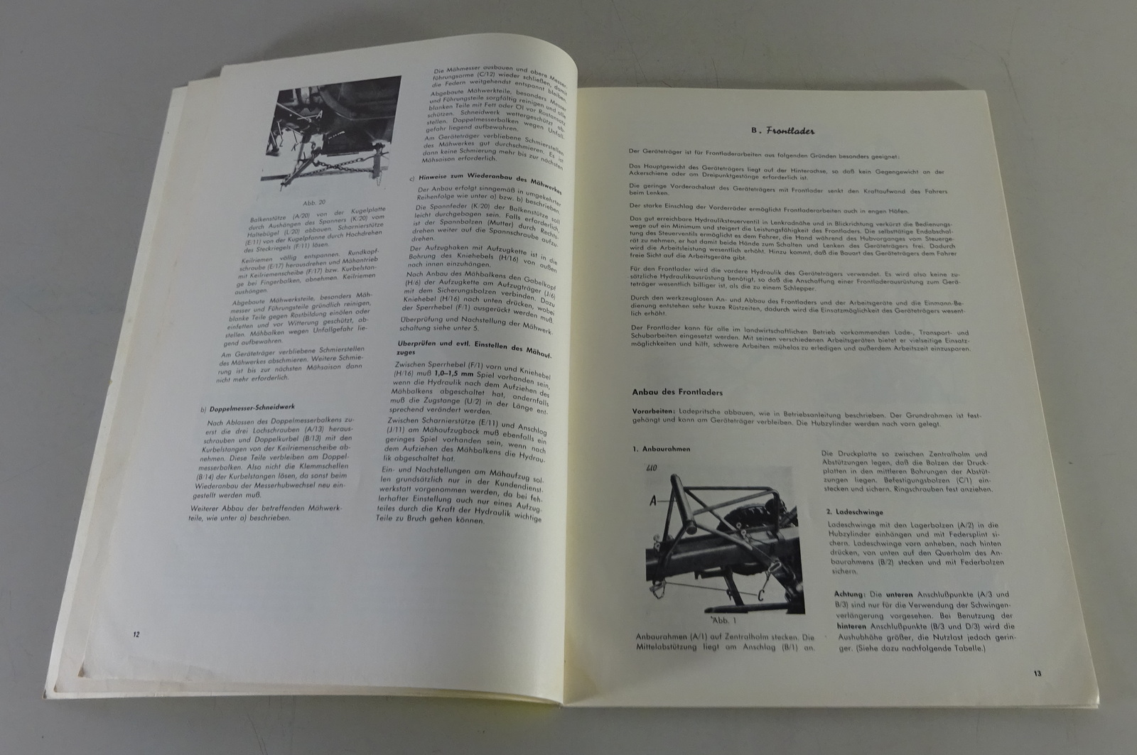 Inhalt: Einfahrzeit, Betriebsstoffe, Geräteträgermerkmale, Arbeiten vor Inbetriebnahme, Bedienung des Geräteträger, Wartung und Pflege, Unfallverhütung, Störungstabelle, Schmierpläne, Anbau, Bedienung und Wartung der Geräte