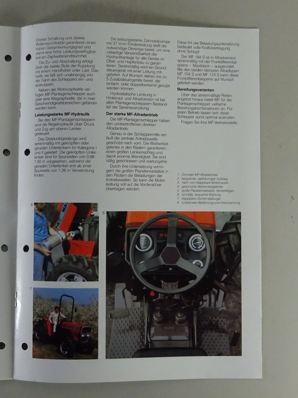 Produktinformationen "Prospekt Massey Ferguson Plantagenschlepper MF 154S / 174S / 184S Stand 09/1982"