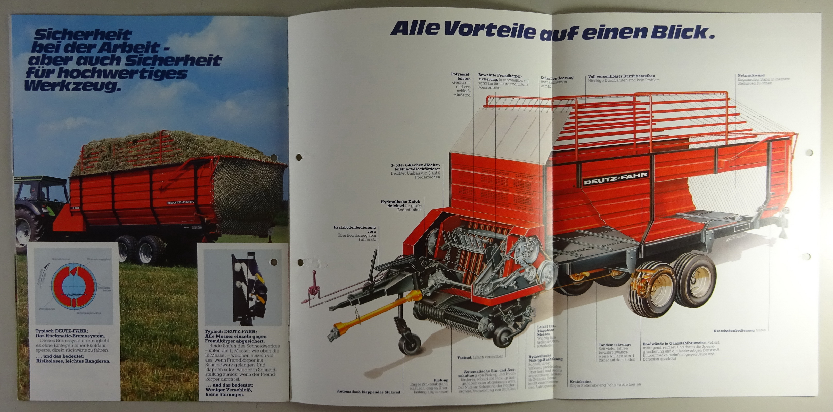 Prospekt / Faltprospekt Deutz-Fahr Kurzschnitt-Ladewagen K 327 etc. von 08/1980