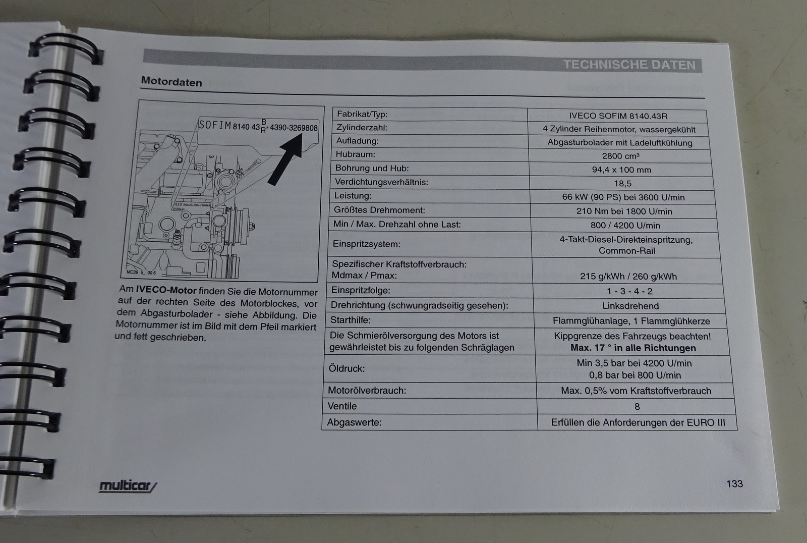 Betriebsanleitung / Handbuch Spezialkraftfahrzeug Multicar M26 Euro III von 2002