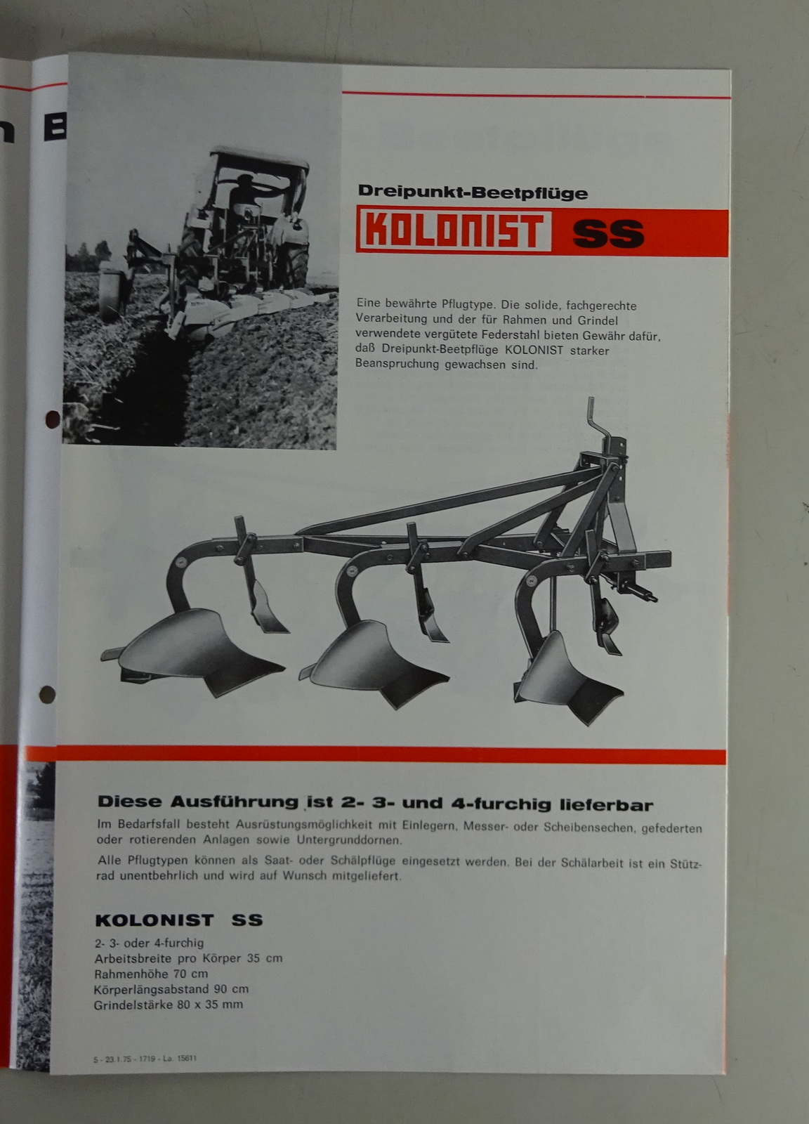 Produktinformationen "Prospekt / Broschüre Niemeyer Beetpflüge Kolonist"