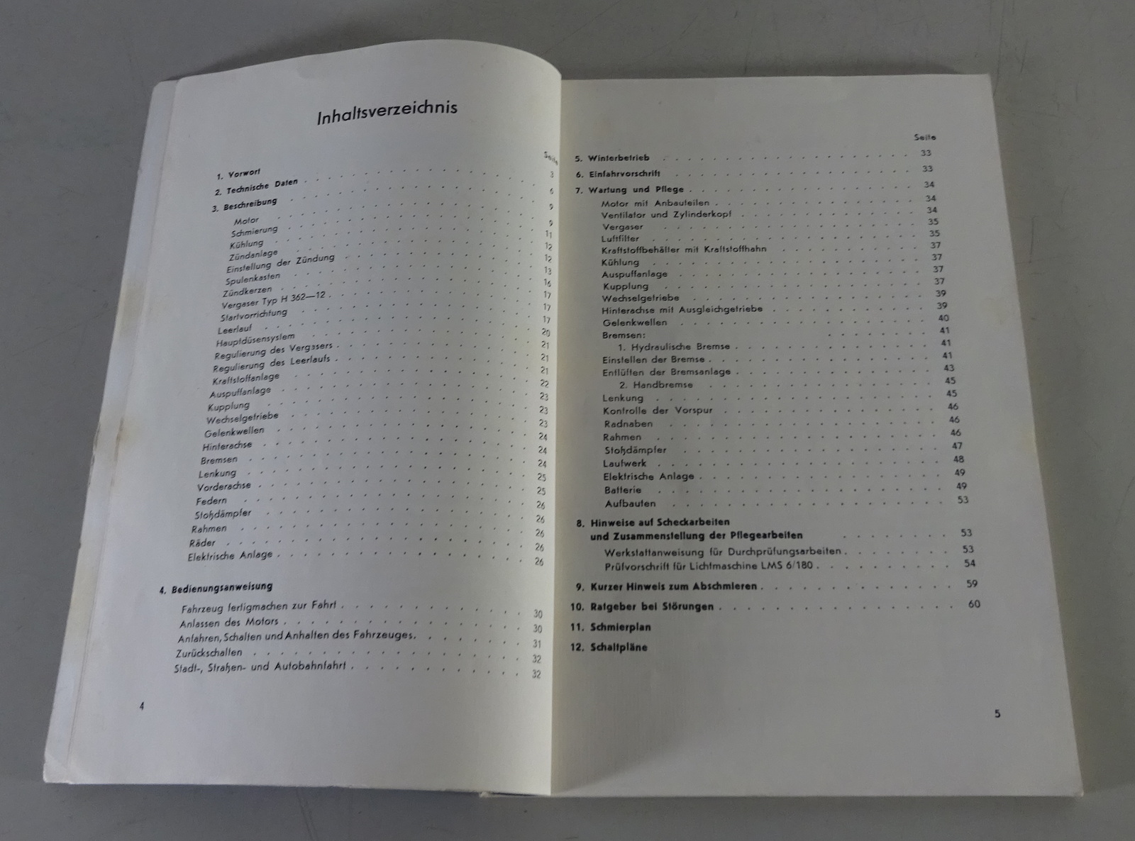 Inhalt: Technische Daten, Beschreibung, Bedienung, Winterbetrieb, Einfahrvorschrift, Wartung und Pflege, Schmierplan