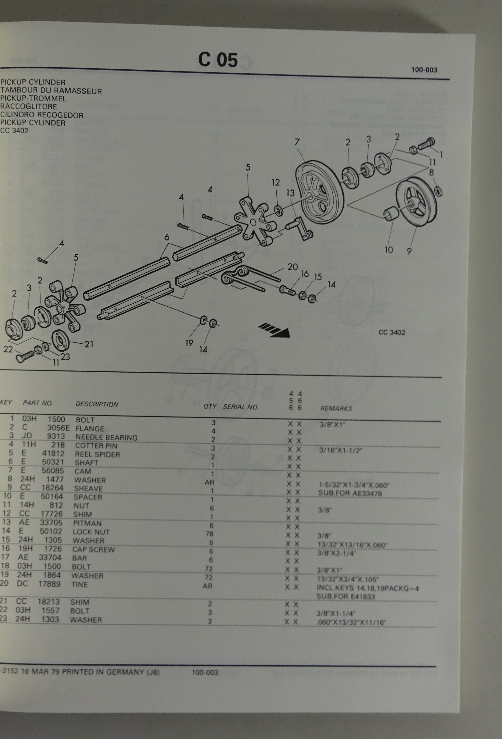 Teilekatalog / Parts Catalog John Deere Ballenpressen 456 466 von 03/1979