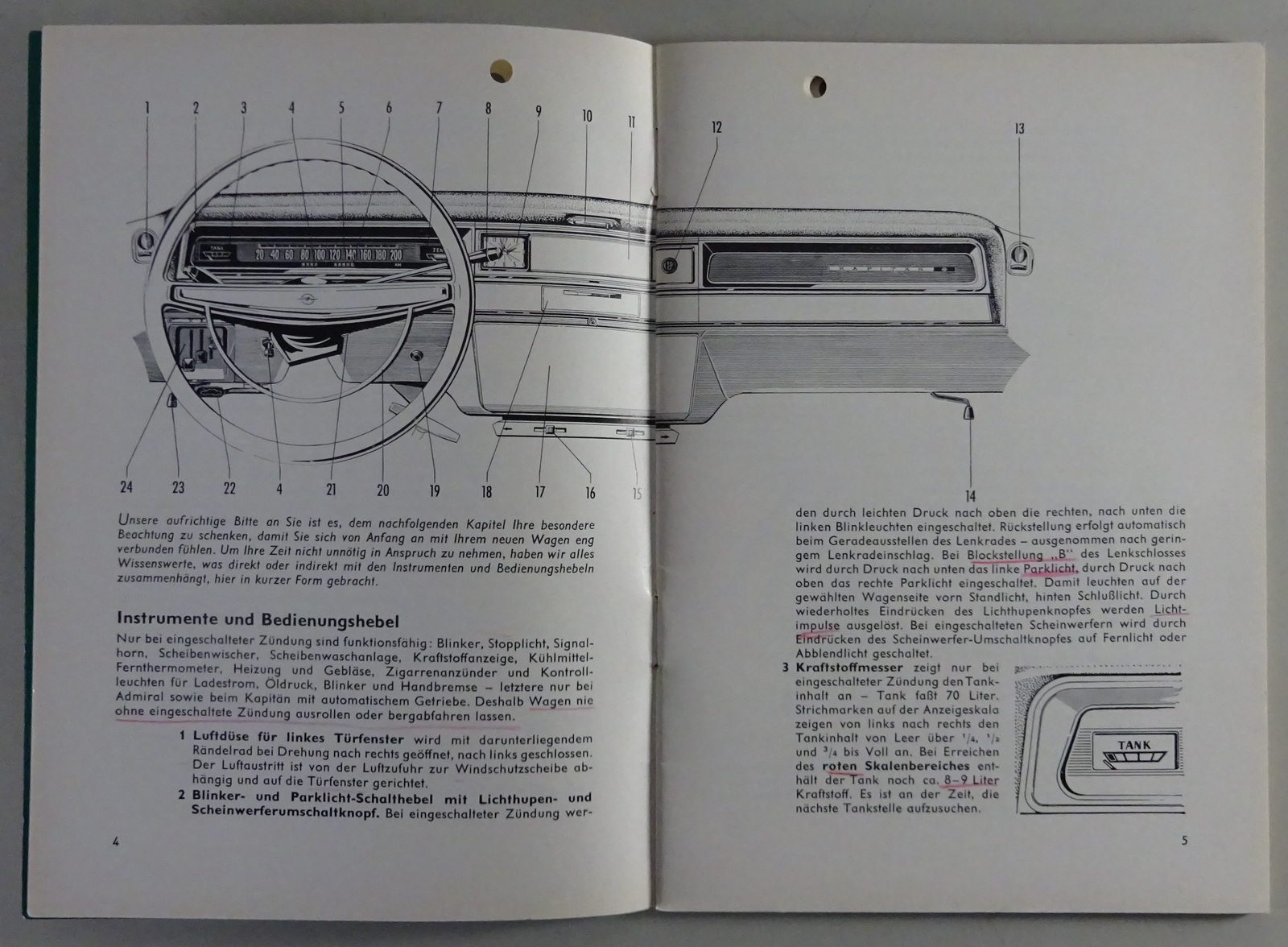 Betriebsanleitung / Handbuch Opel Kapitän + Admiral A 2,8 liter von 06/1966
