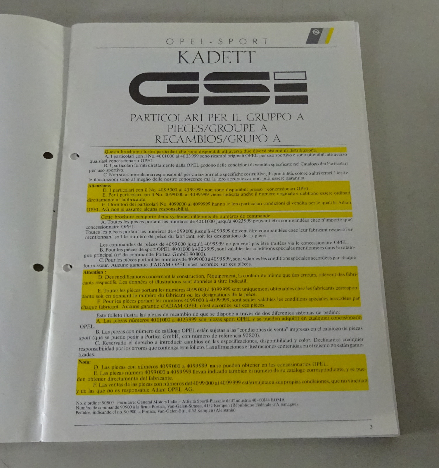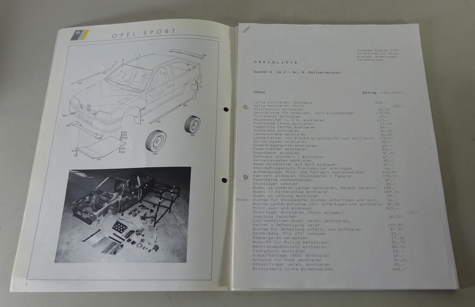 Prospekt / Broschüre Opel Kadett GSi Gruppe A Rallye Motorsport Stand 03/1987