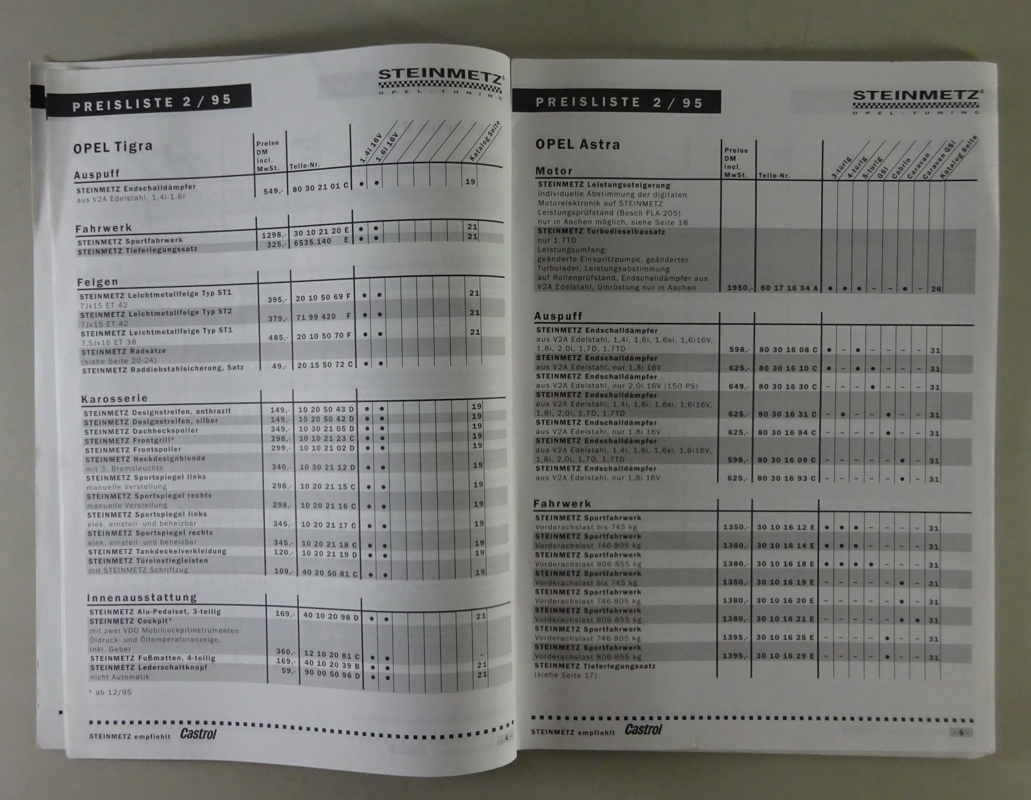 Prospekt Steinmetz Opel Tuning mit Omega, Vectra, Calibra, Astra Cabrio, etc.´95