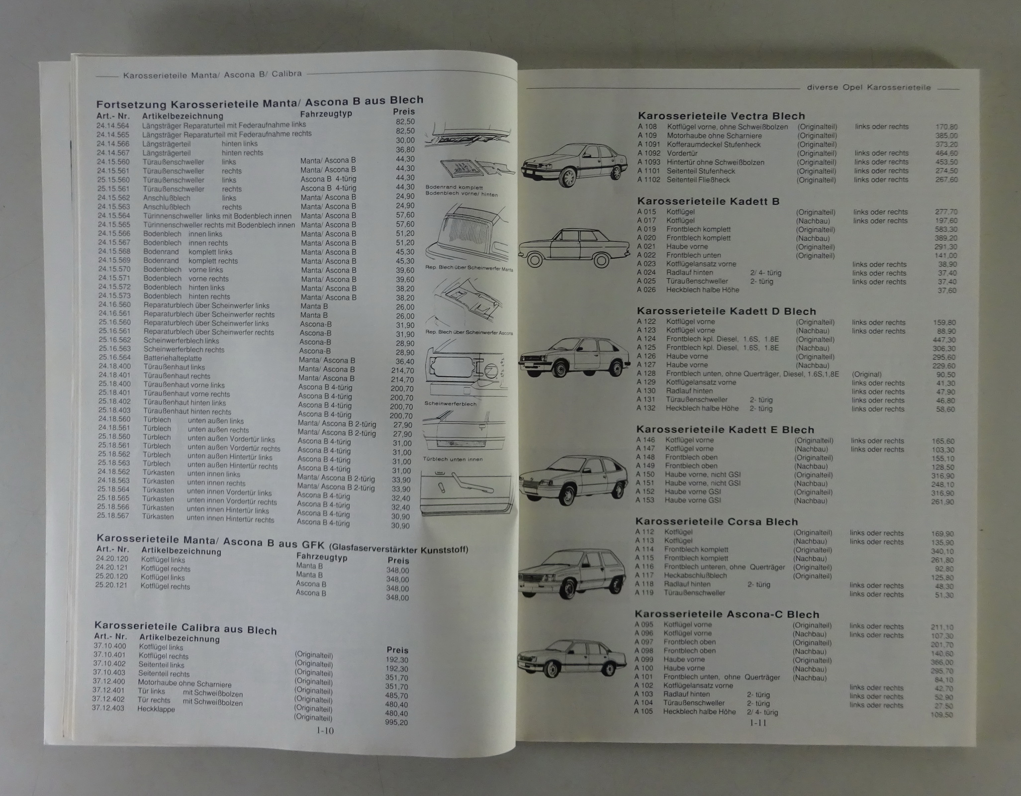 Prospekt Leidinger Opel Tuning mit Opel GT, Manta, Kadett, Ascona, etc. von 1993