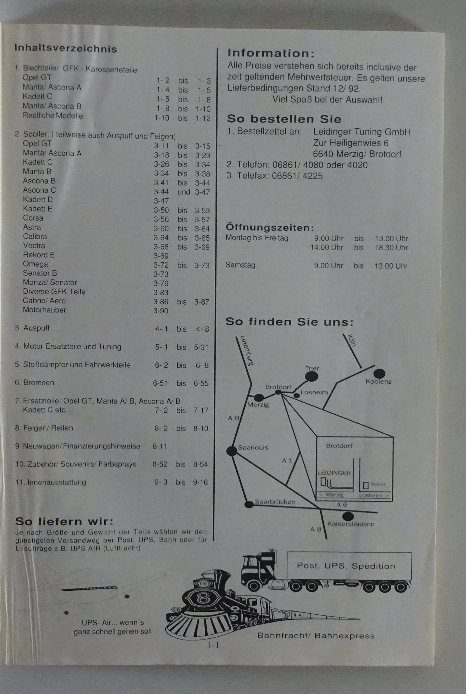 Produktinformationen "Prospekt Leidinger Opel Tuning mit Opel GT, Manta, Kadett, Ascona, etc. von 1993"