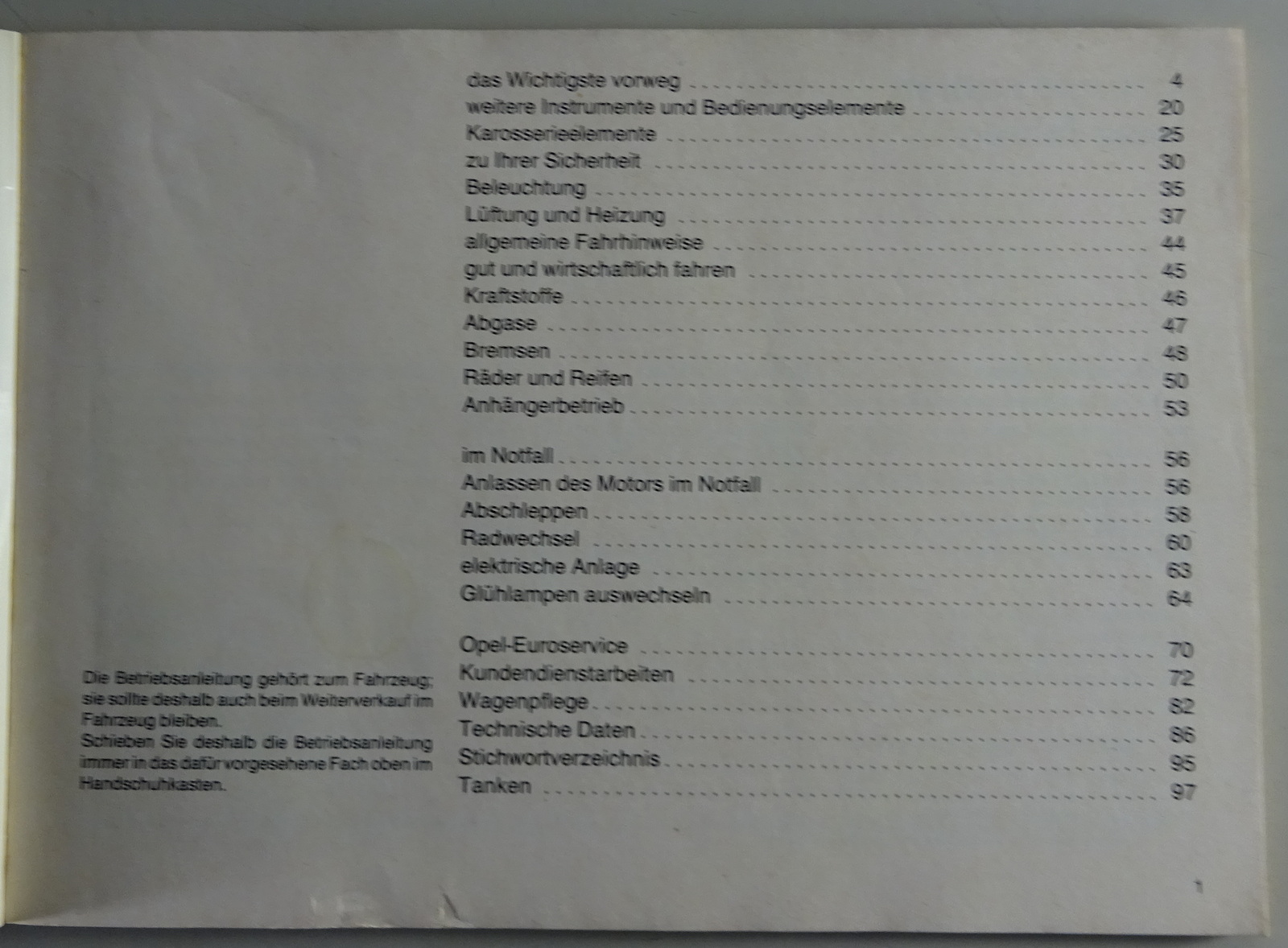 Betriebsanleitung / Handbuch original Opel
