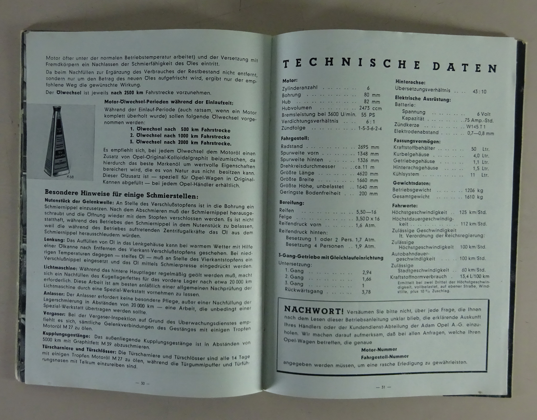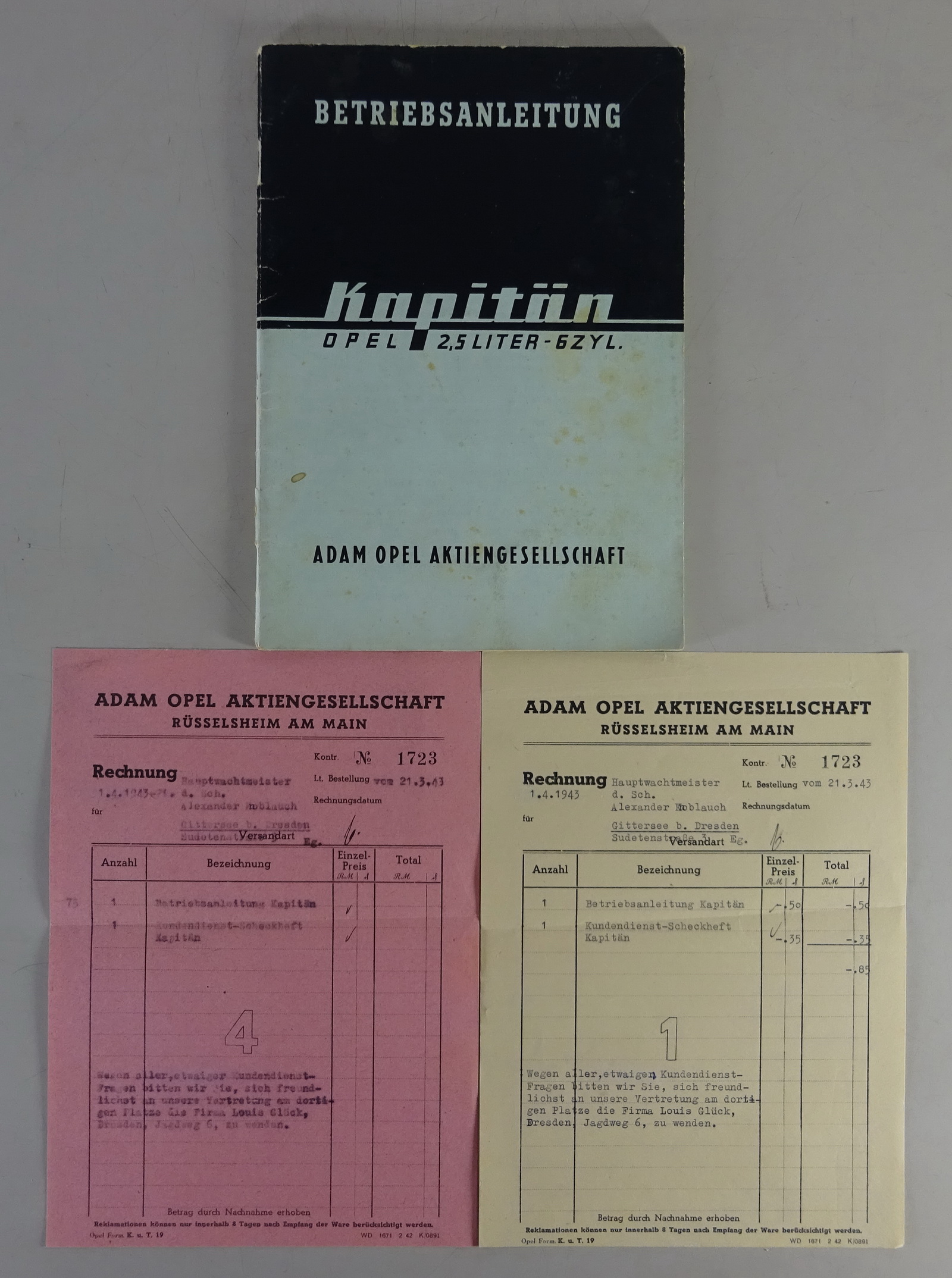 Inhalt: Bedienung, Technische Daten, Wartung / Pflege Schmierplan etc. + original Rechnung von 1943