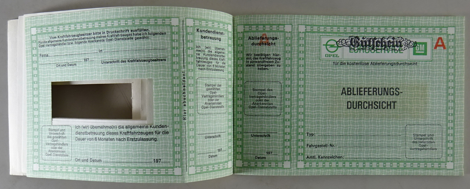Scheckheft blanko Opel Kadett C / Ascona B / Manta B / Rekord D... Stand 06/1976