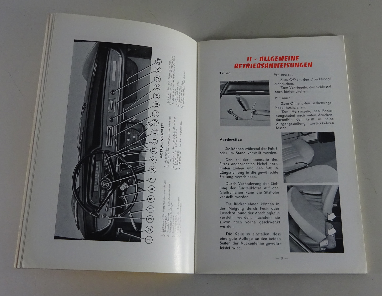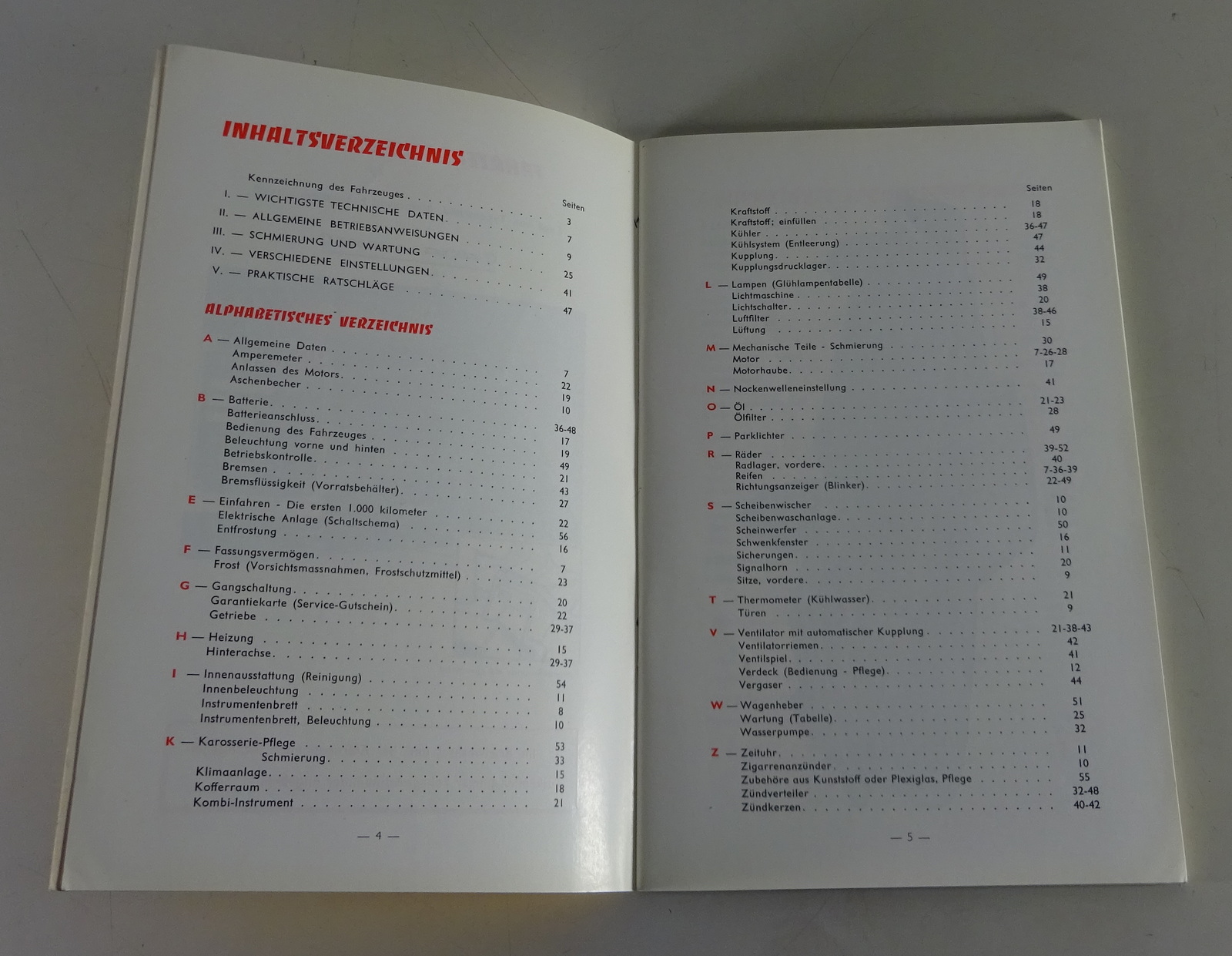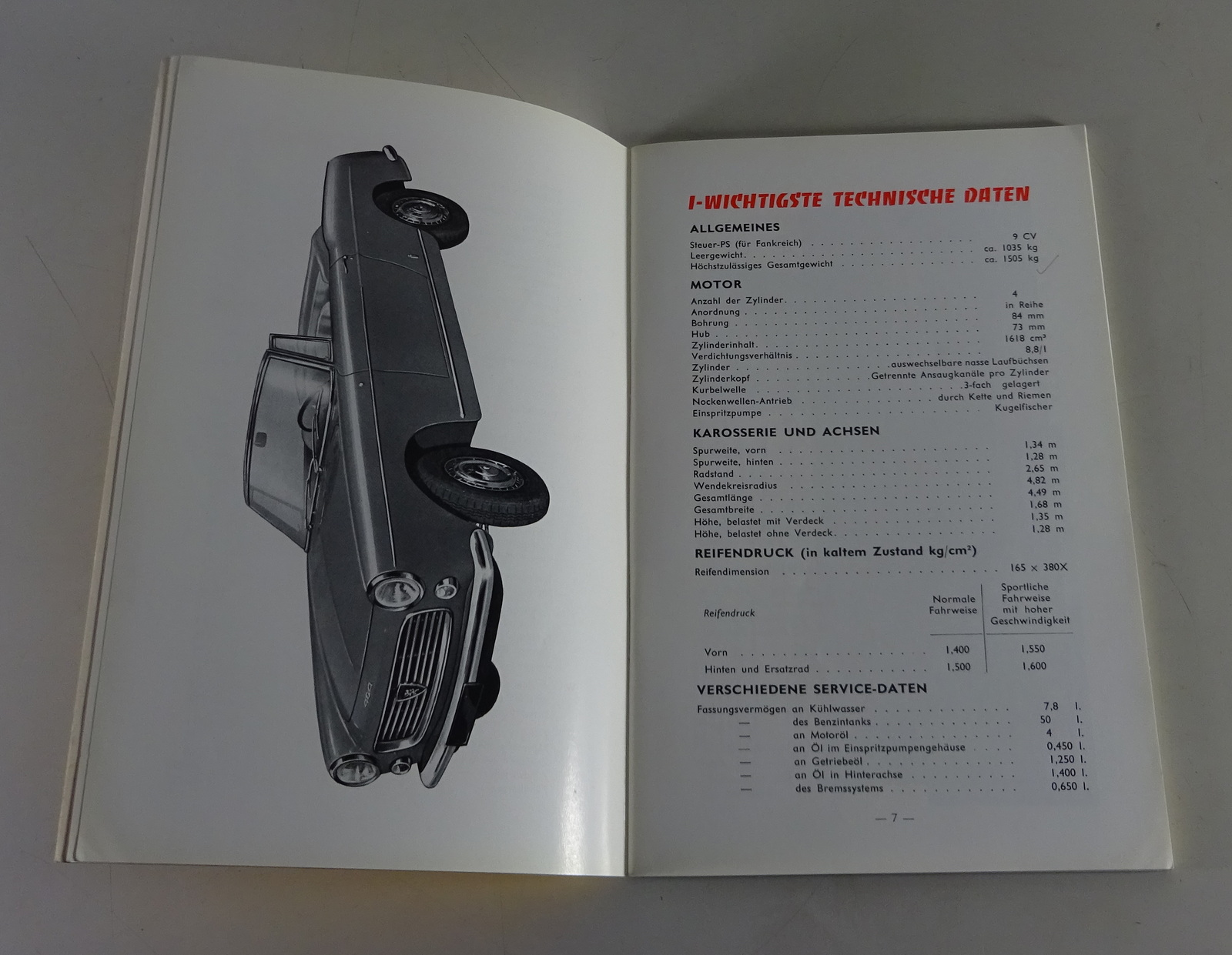 Bordmappe + Betriebsanleitung Peugeot 404 Cabrio & Coupé Einspritzer von 10/1962