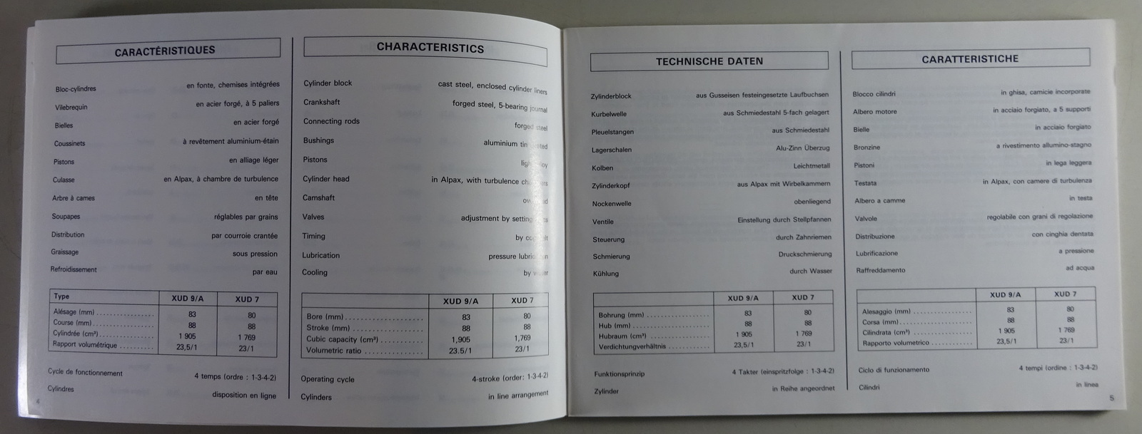Betriebsanleitung + Wartungshandbuch Peugeot Dieselmotor XUD 7 + 9 Stand 01/1988