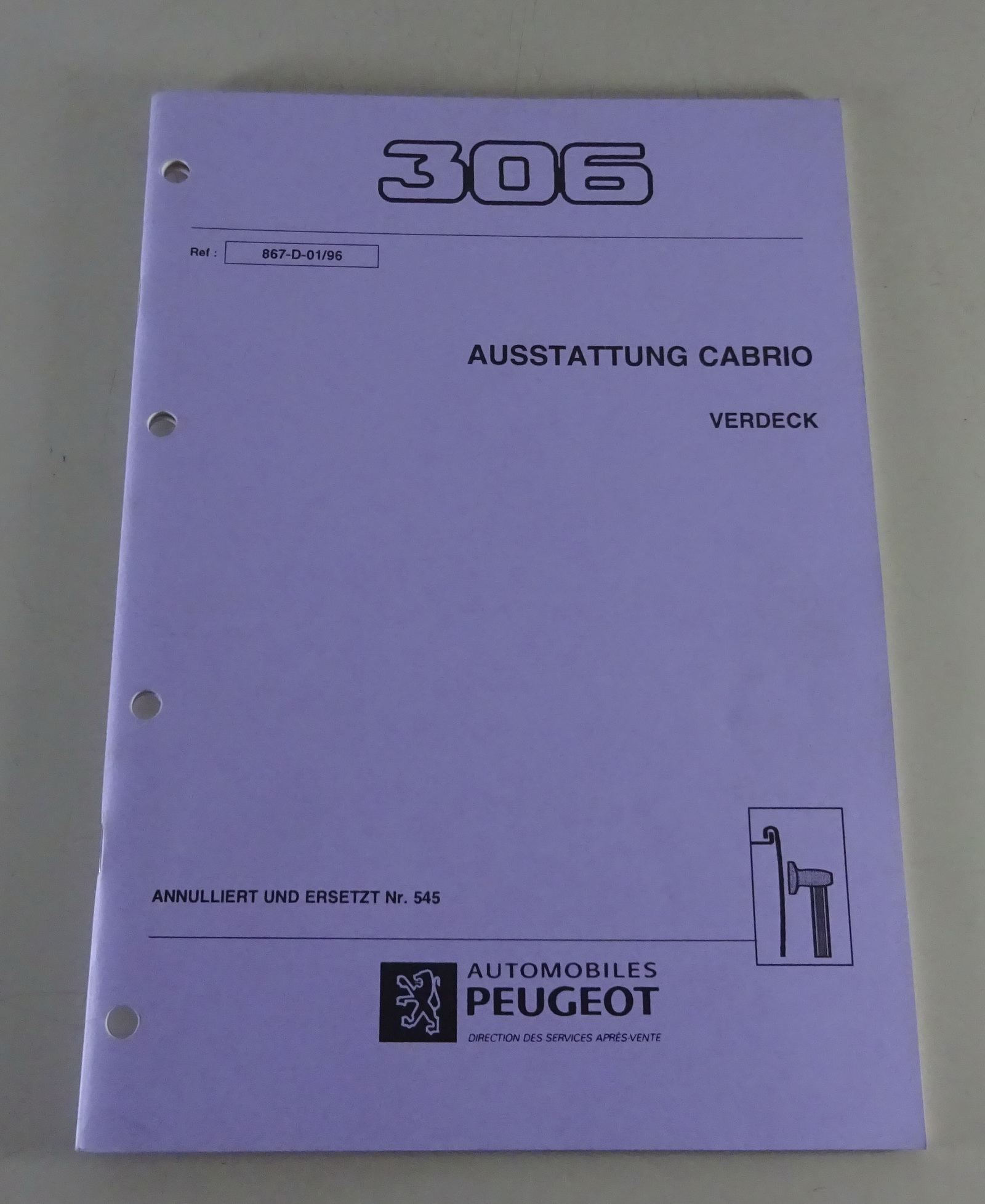 Originales Werkstatthandbuch von Peugeot Peugeot 306 Cabrio / Cabriolet... mehr