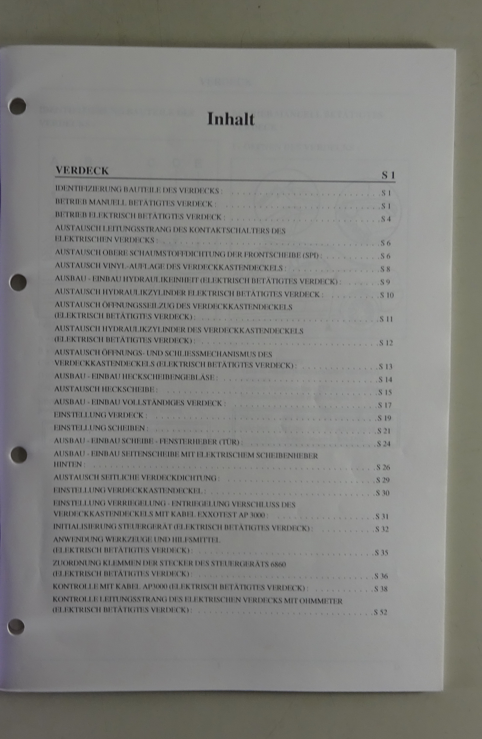 - AUSBAU - EINBAU VOLLSTÄNDIGES VERDECK