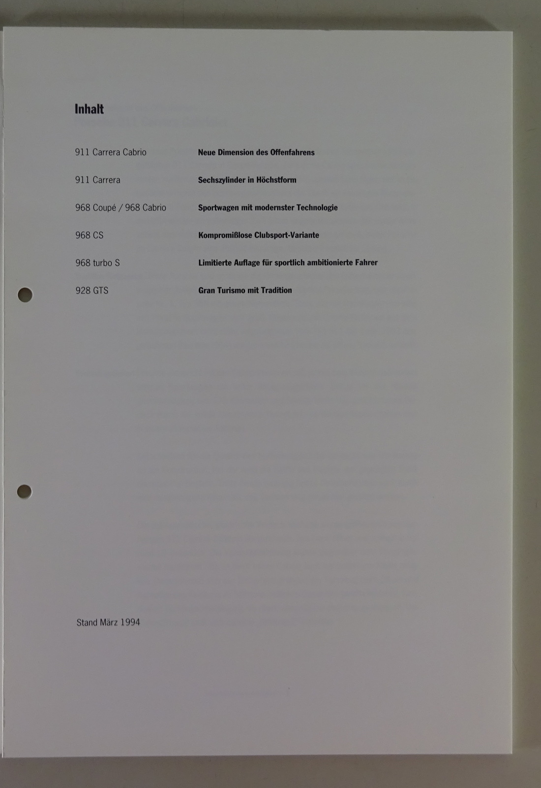 Produktinformationen "Pressemappe + Pressefotos Porsche 911 Carrera Cabrio Stand 03/1994"