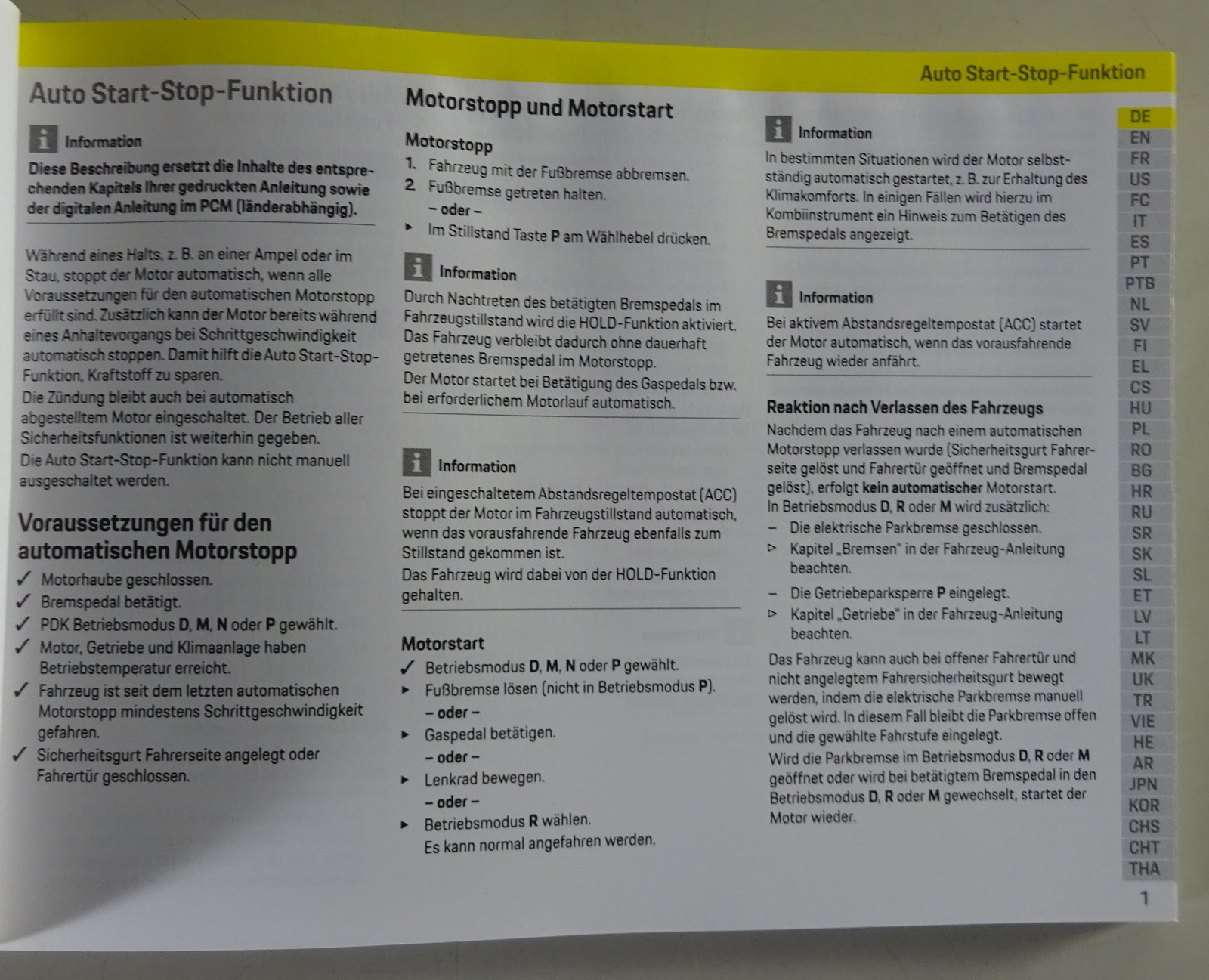 Beilage zur Betriebsanleitung / Handbuch | Porsche Panamera | Modelljahr 2019