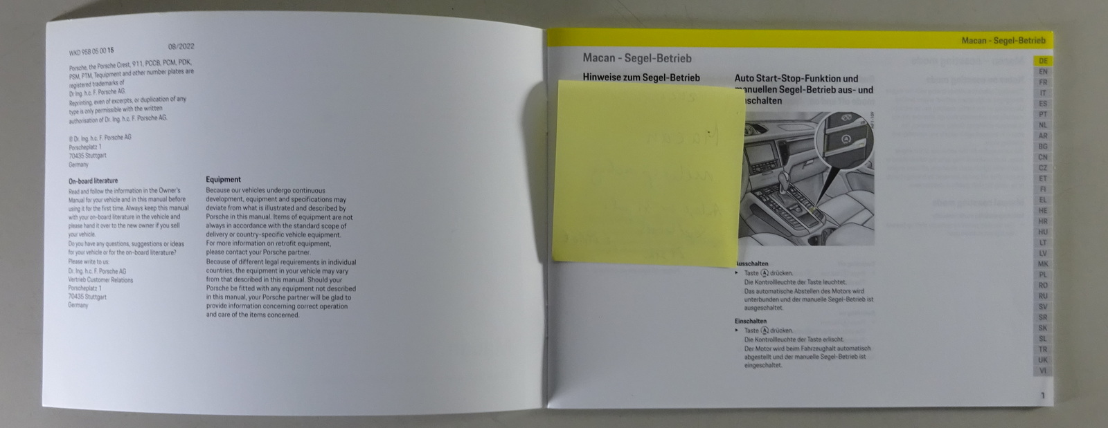 Produktinformationen "Anlage zur Betriebsanleitung / Handbuch | Porsche Macan | Stand 08/2022"