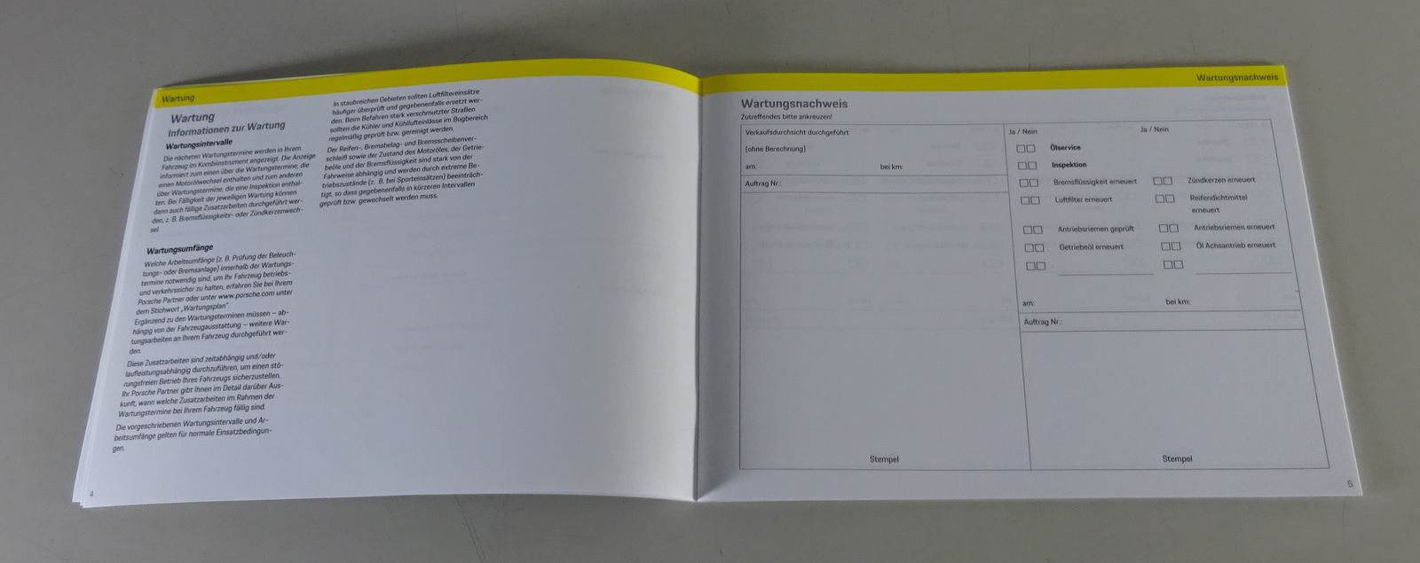 Scheckheft / Serviceheft / Garantie & Wartung original Porsche