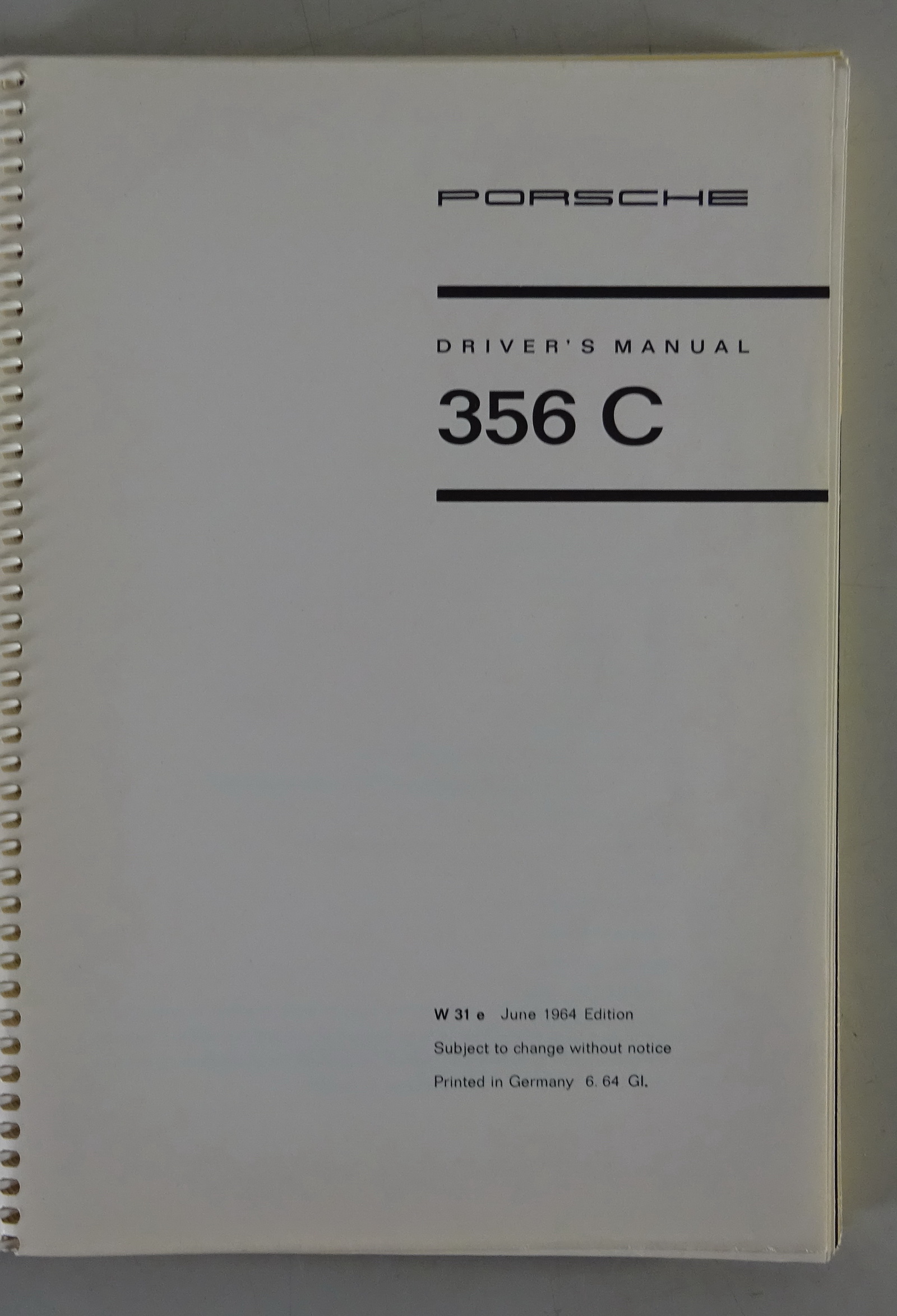 Owner´s Manual / Handbook Porsche 356 C 1600 C / 1600 SC from 06/1964