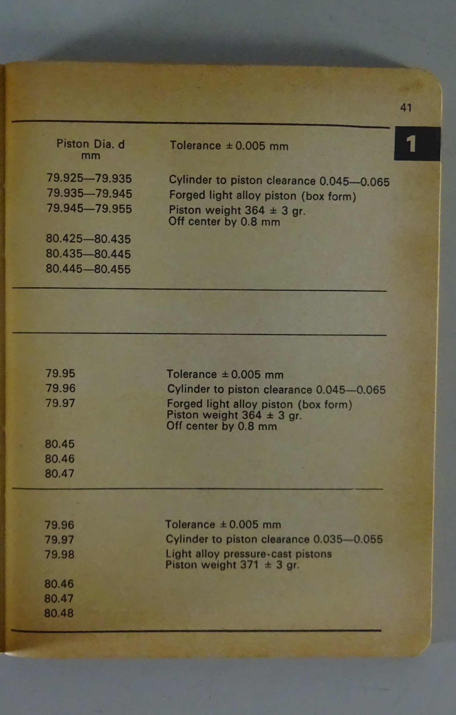 Porsche table book - Types, dimensions, tolerances for