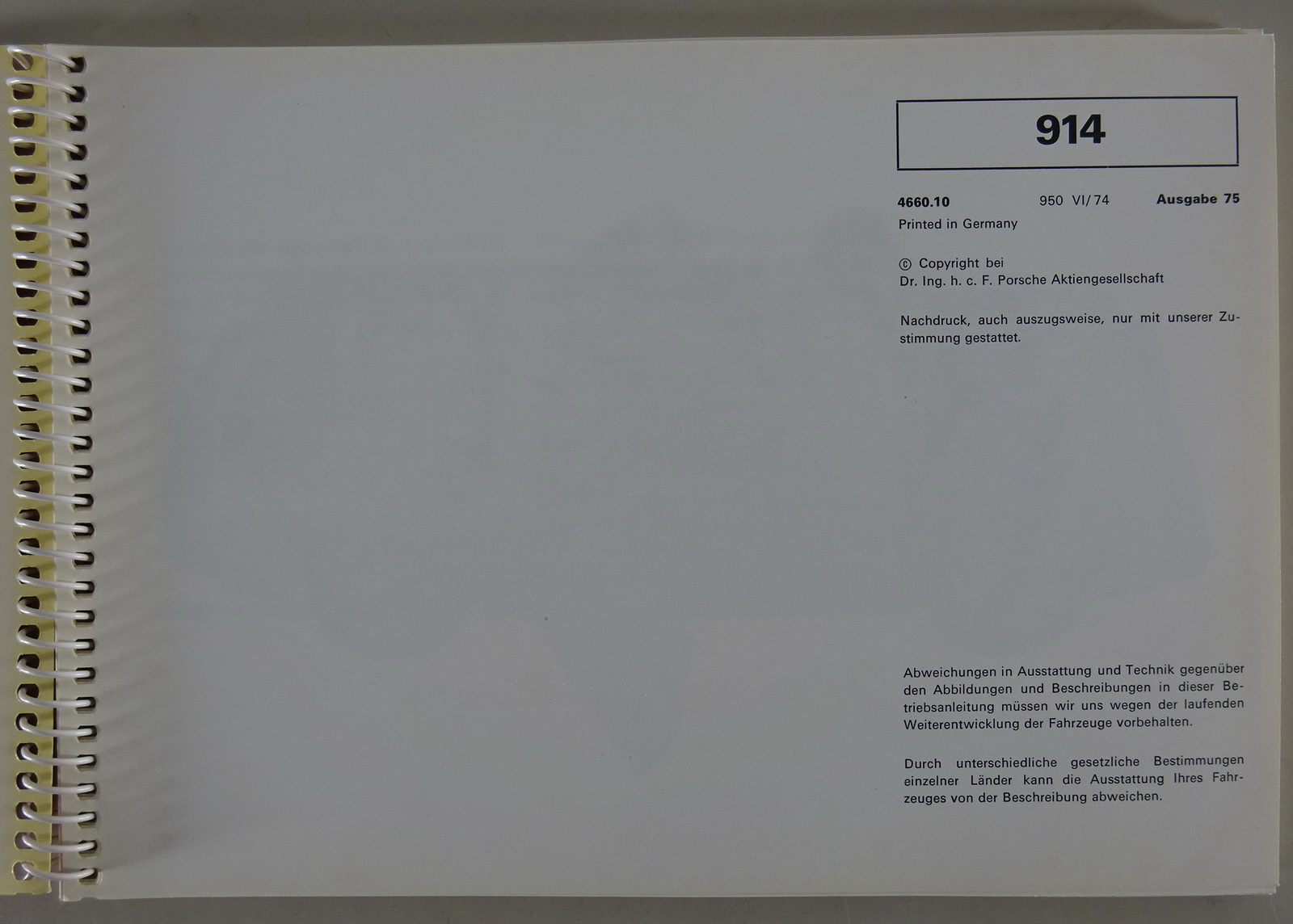 Betriebsanleitung / Handbuch VW Porsche 914 1,8 / 2,0 Modelljahr 1975