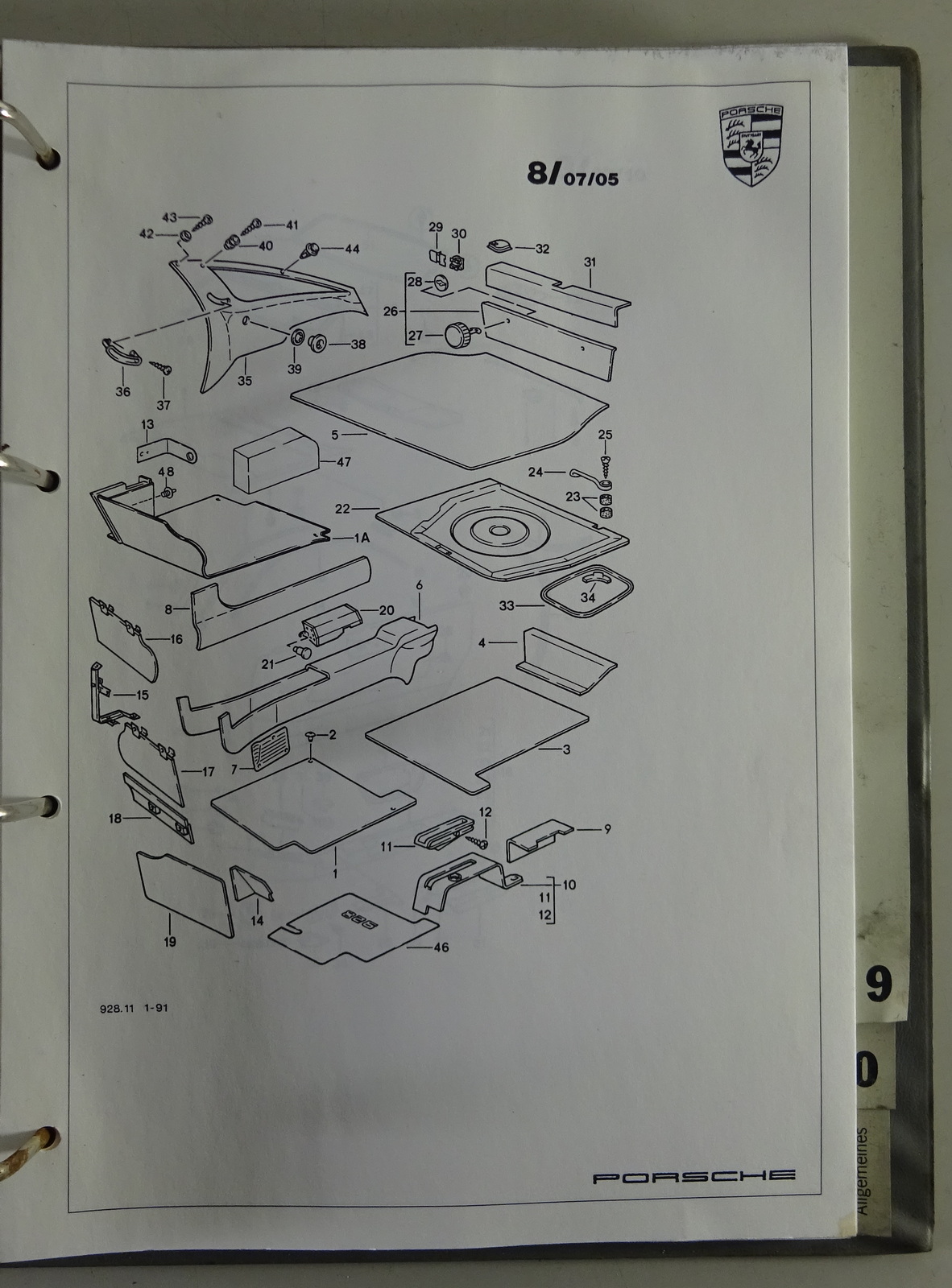 Originaler Bildkatalog / Teilekatalog Porsche 928 S4 + 928 GT Baujahr 1987 -1991
