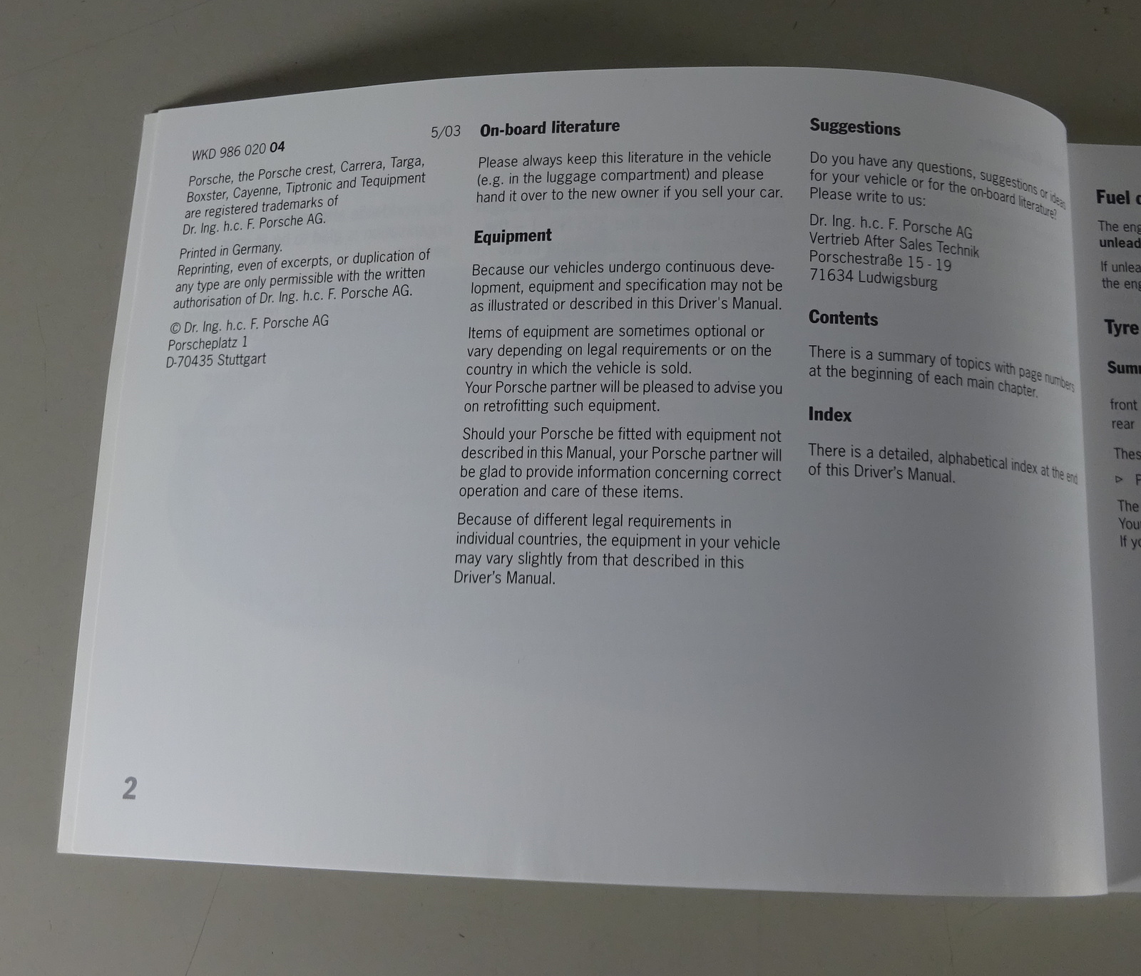 Inhalt: Owner`s Manual, Quick Reference, Quick Reference CDR 23, Porsche Assistance, Preisliste, Dealer Directory