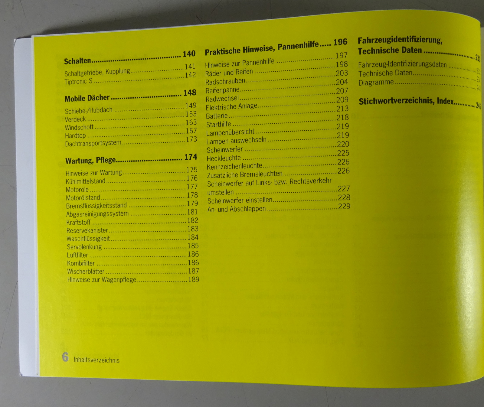 Technische Daten, Beschreibung, Bedienung, Pannenhilfe, Wartung, Pflege, praktische Hinweise, Pannenhilfe, Sicherheit etc.