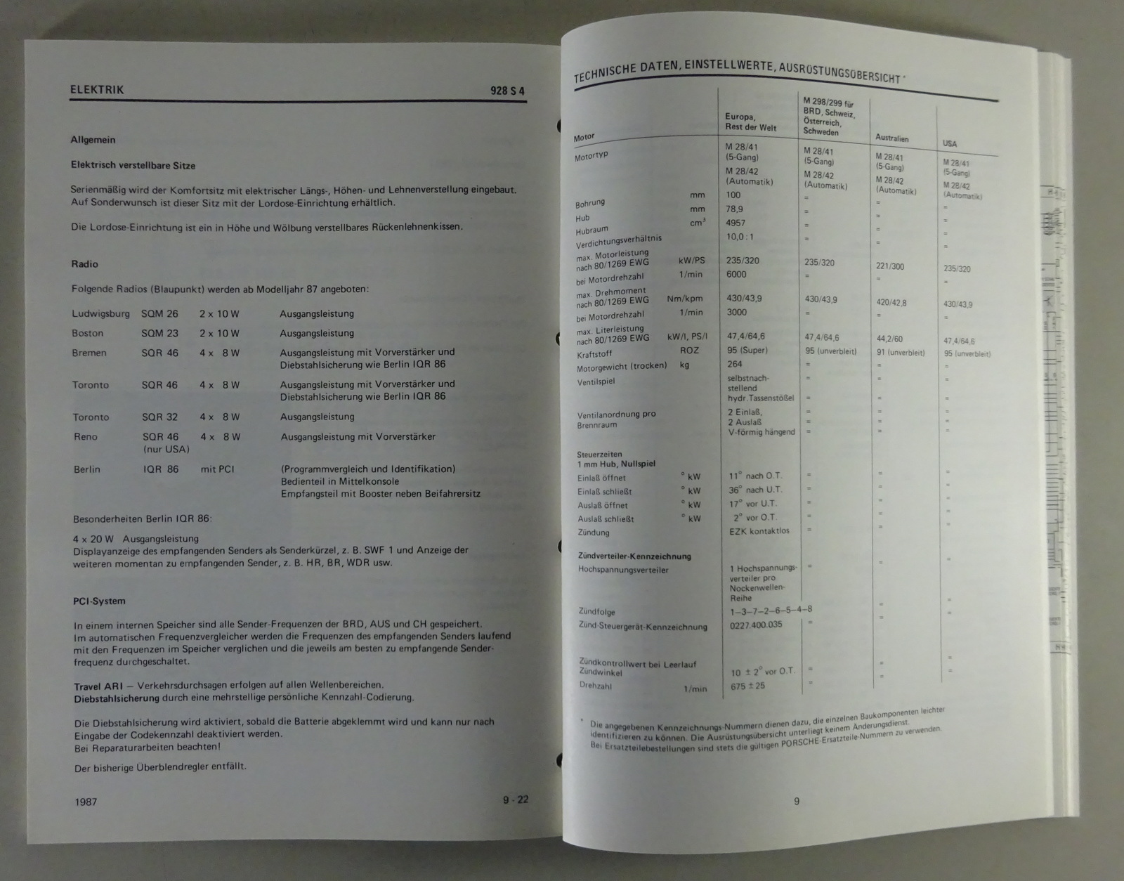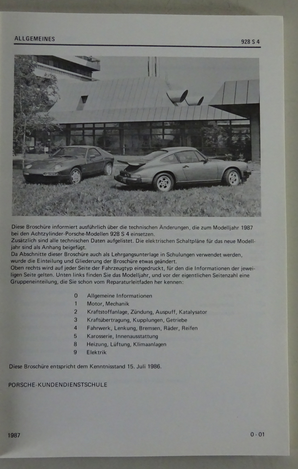 Werkstatthandbuch / Service Information Technik Porsche 928 S4 Mj. 87 von 7/1986
