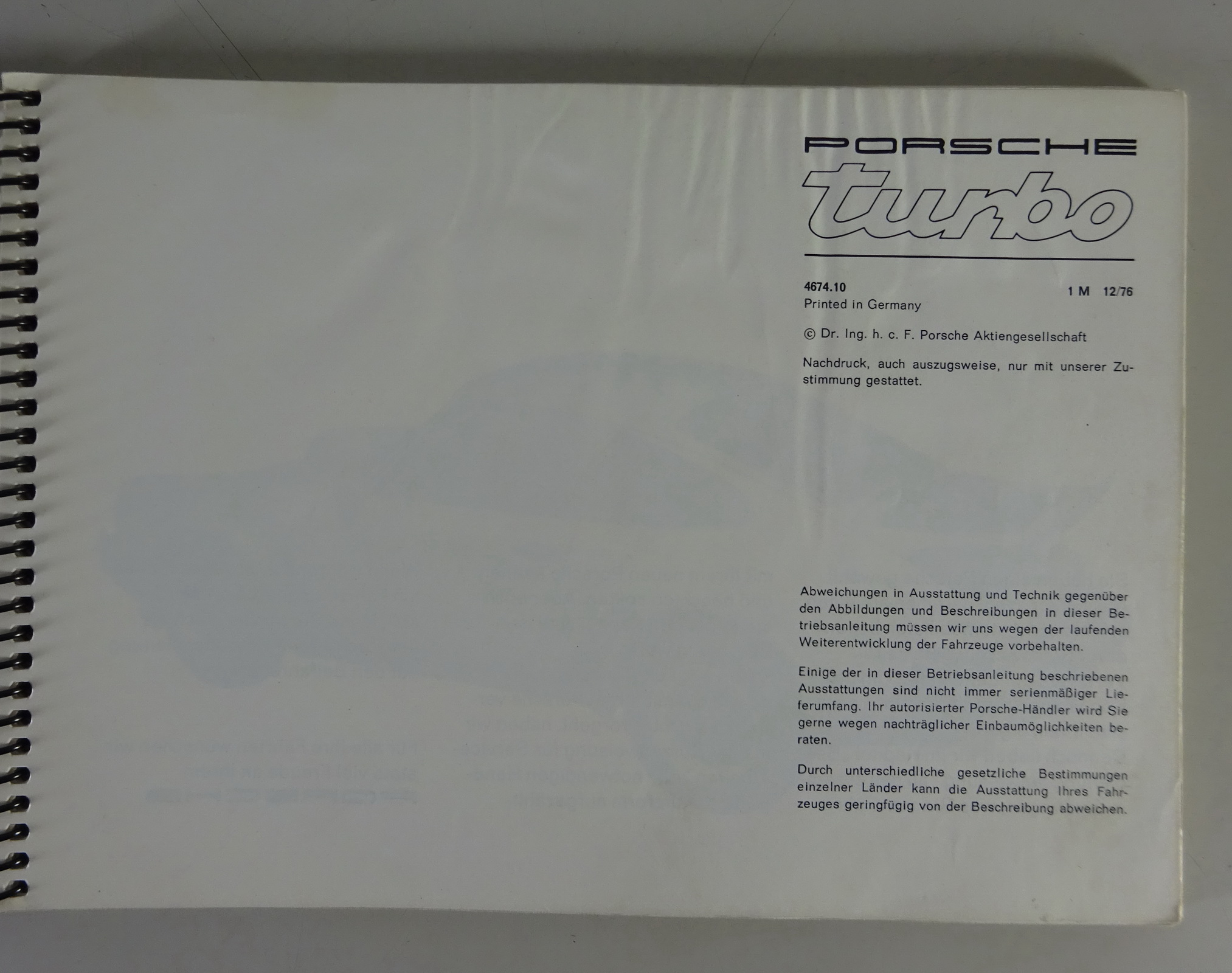 Betriebsanleitung / Handbuch + Pflegepass Porsche 911 Turbo 930 Modelljahr 1977